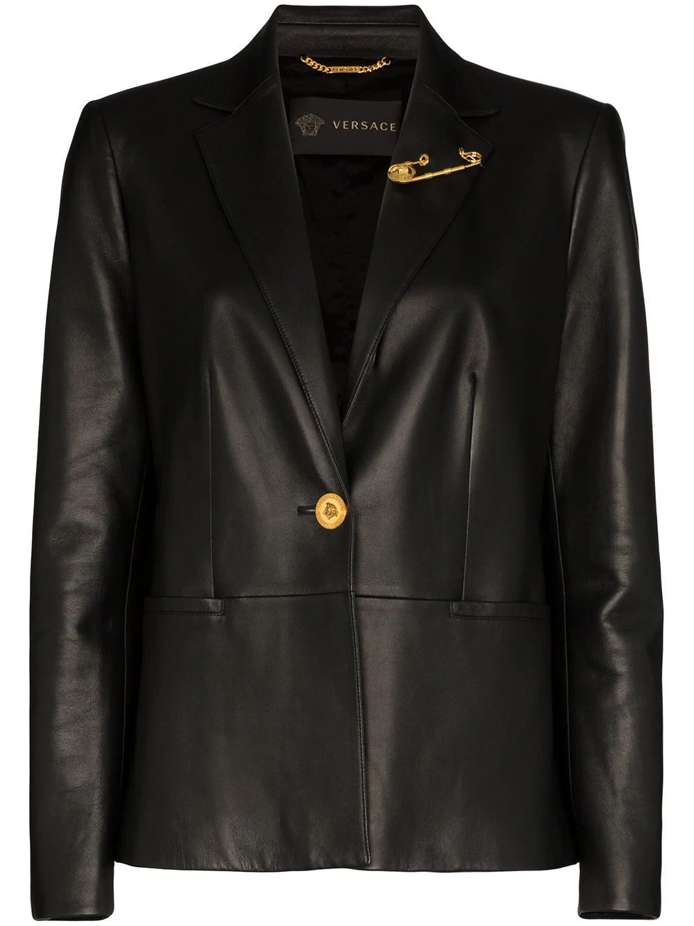 Blazer en cuir à détail d’epingle à nourrice en matériaux synthétiques->élasthanne Versace avec revers crantés.