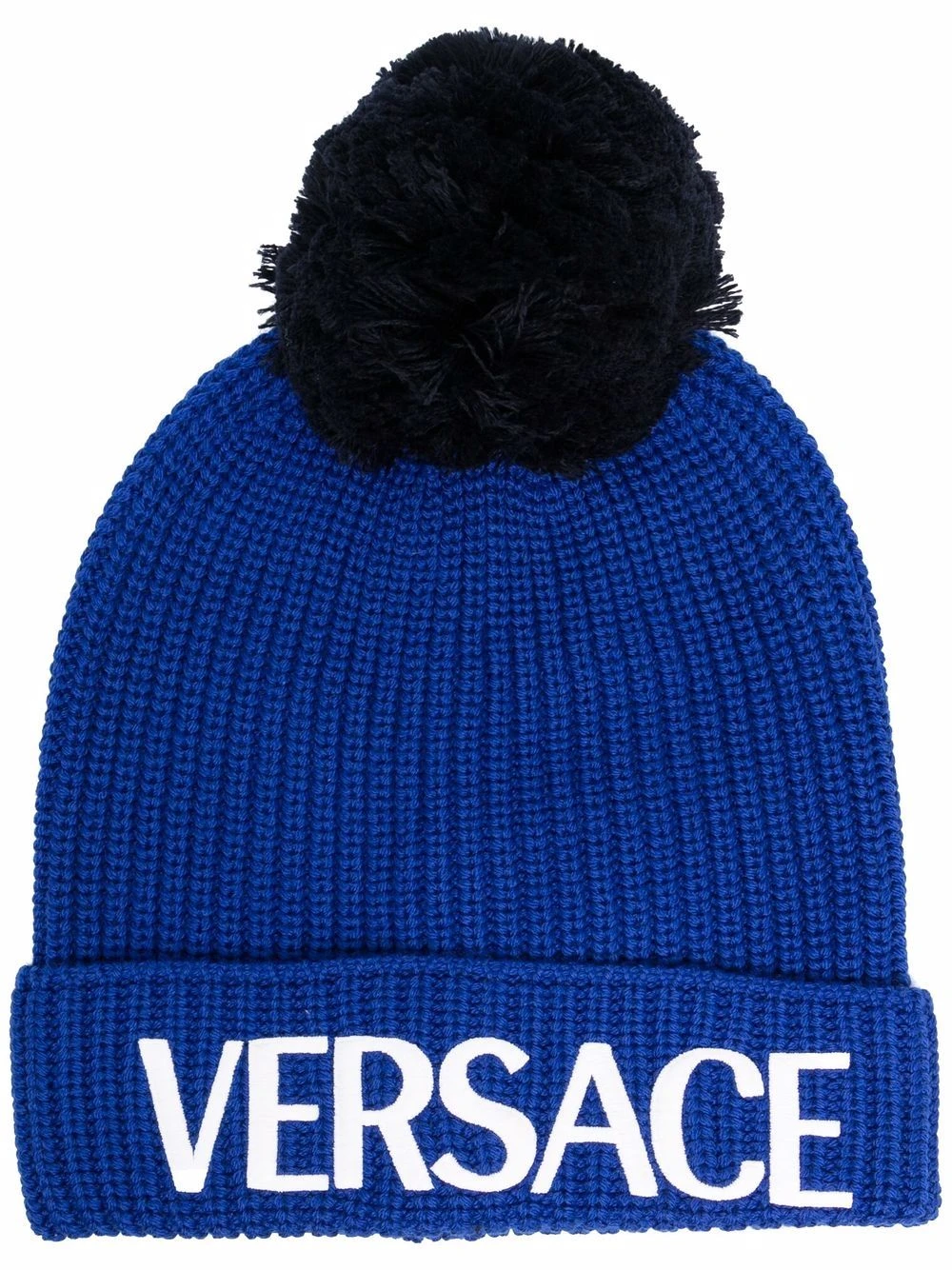 Design tricoté, logo imprimé sur le devant, détail de pompon. Matière : laine.