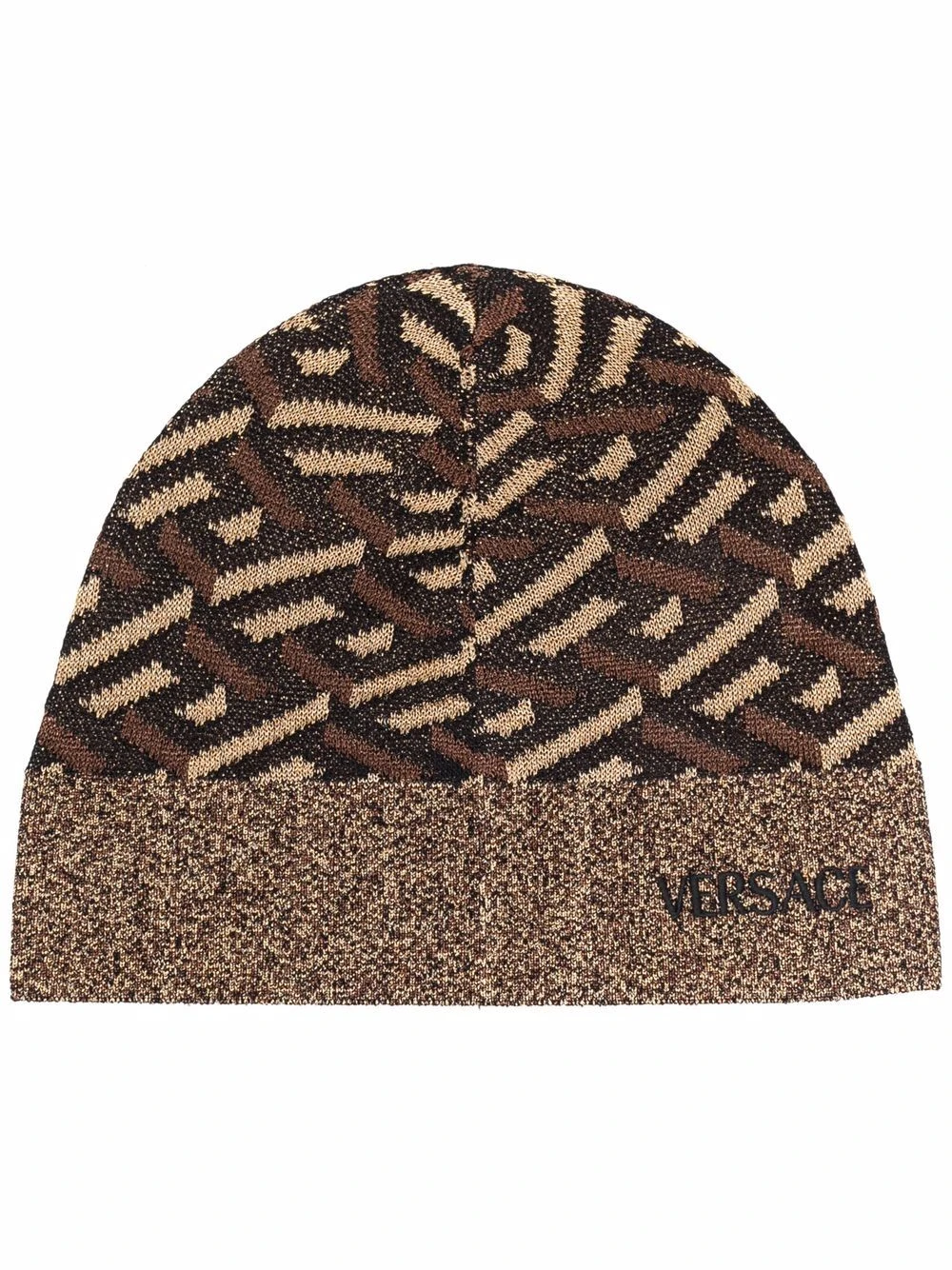Design colour block, tissage métallisé, logo imprimé sur le devant, design tricoté.