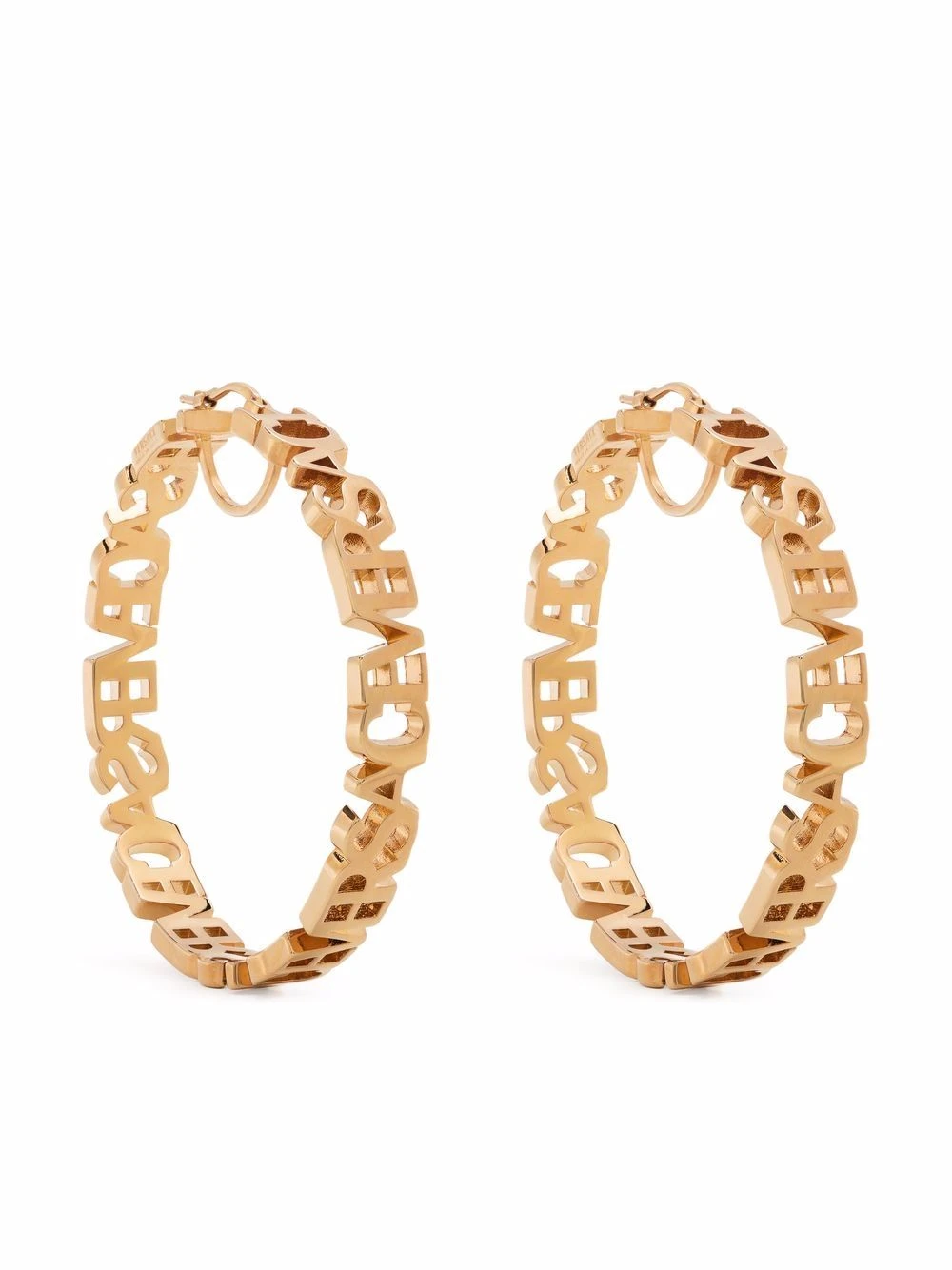 Logo doré, fermoir épingle pivotant. Matière : métal. Ces boucles d’oreilles sont vendues par paire.