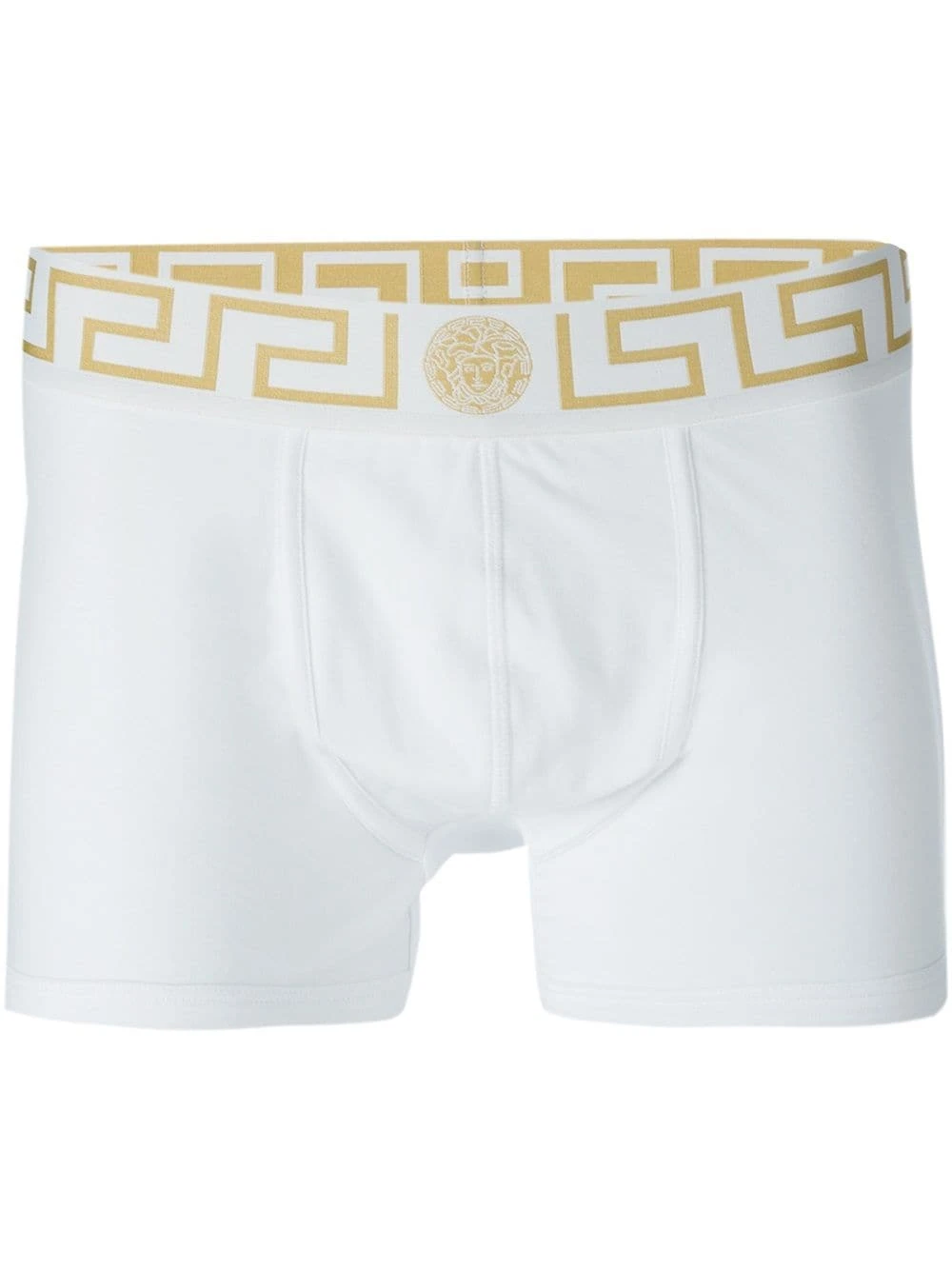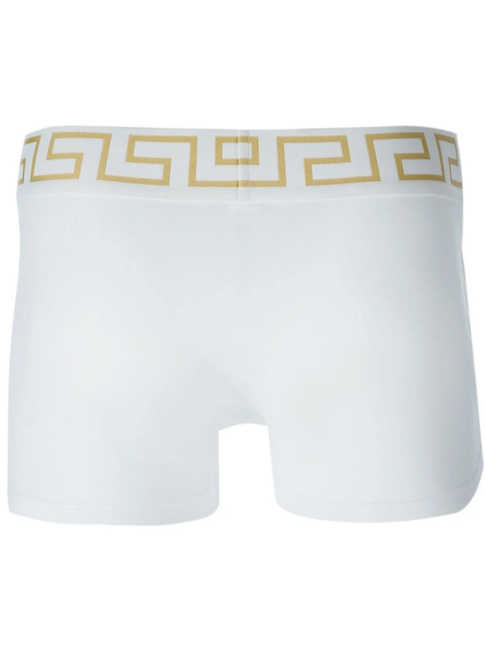 Boxer à logo en coton stretch blanc Versace avec bordure élastique et détail brodé.
