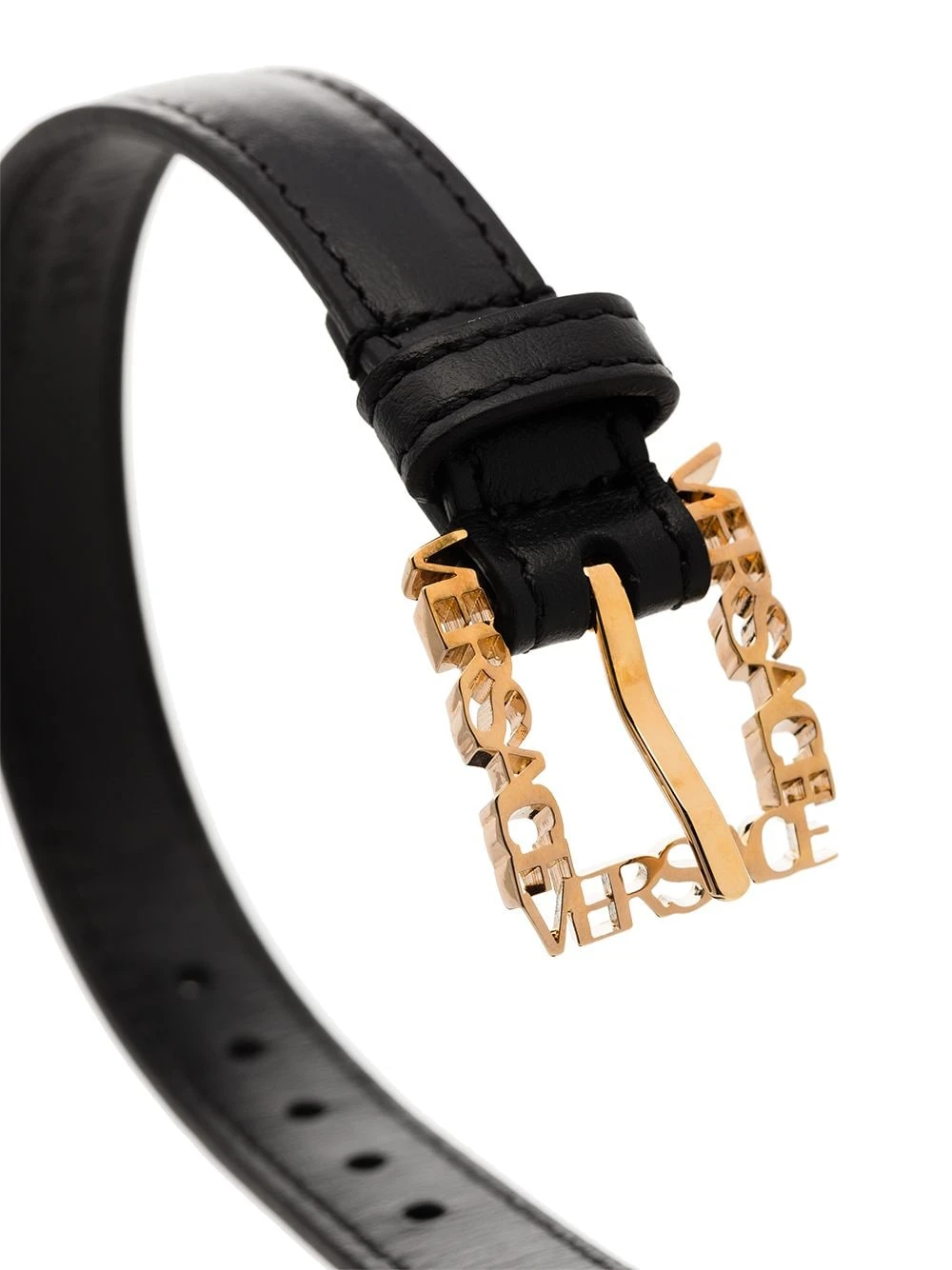 Finitions en métal doré, trous percés. Matière : cuir.