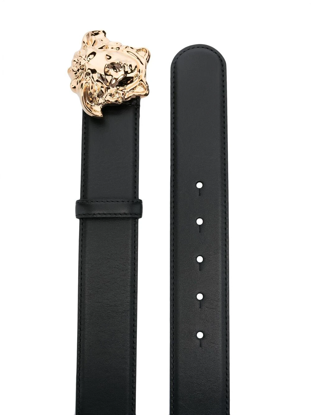Détail Medusa, taille ajustable, finitions en métal doré. Couleur : noir. Matière : cuir.
