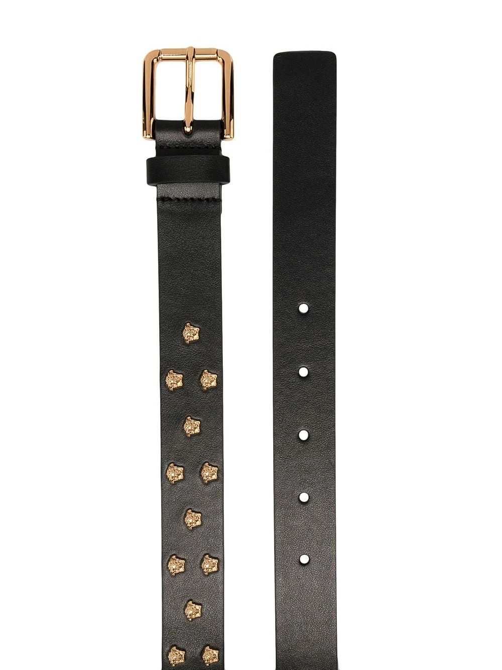 Détail Medusa, fermeture à boucle, finitions en métal doré, taille ajustable. Couleur : noir. Matière : cuir.