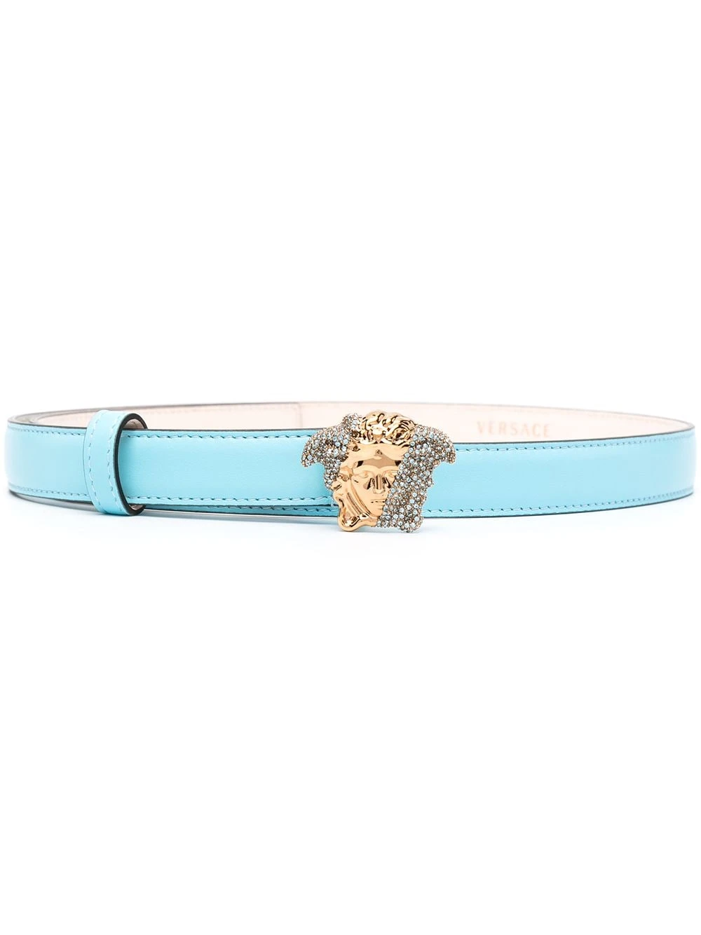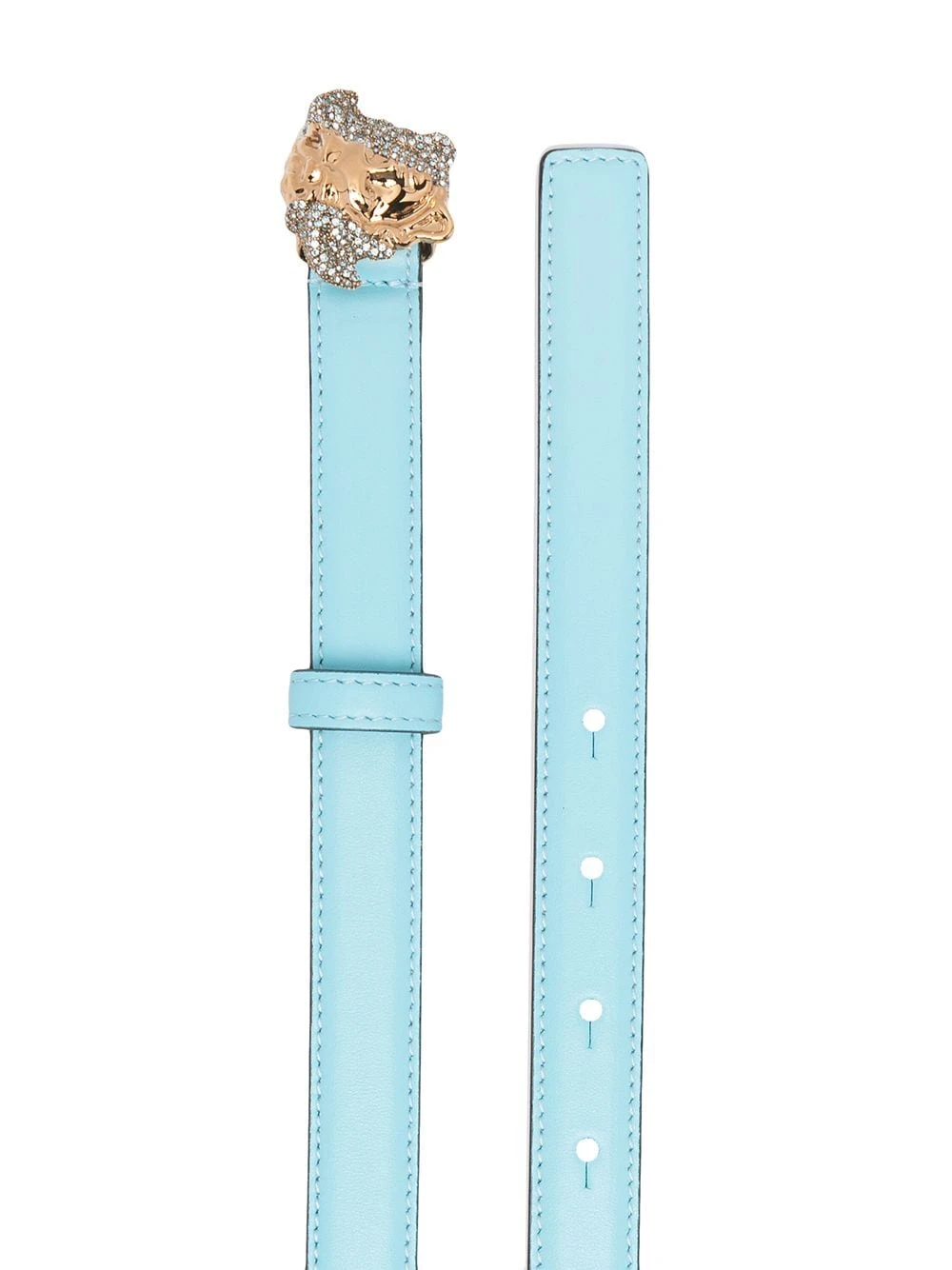 Finitions en métal doré, ornement en cristal, motif Medusa, taille ajustable. Matière : cuir.