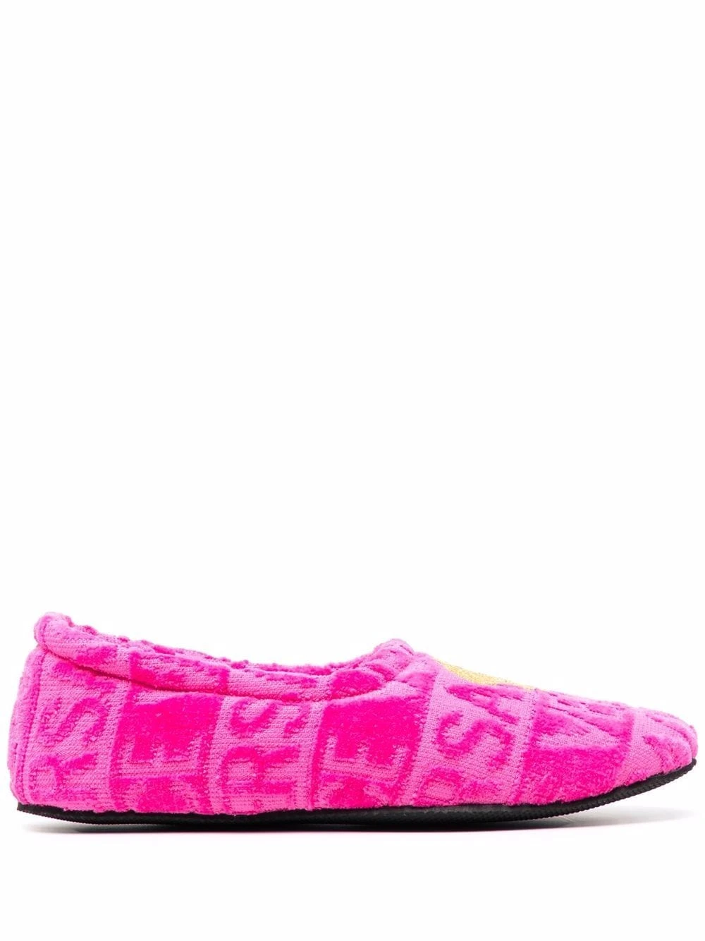 Bout rond, motif Medusa, motif monogrammé, design à enfiler, semelle plate. Couleur : rose.