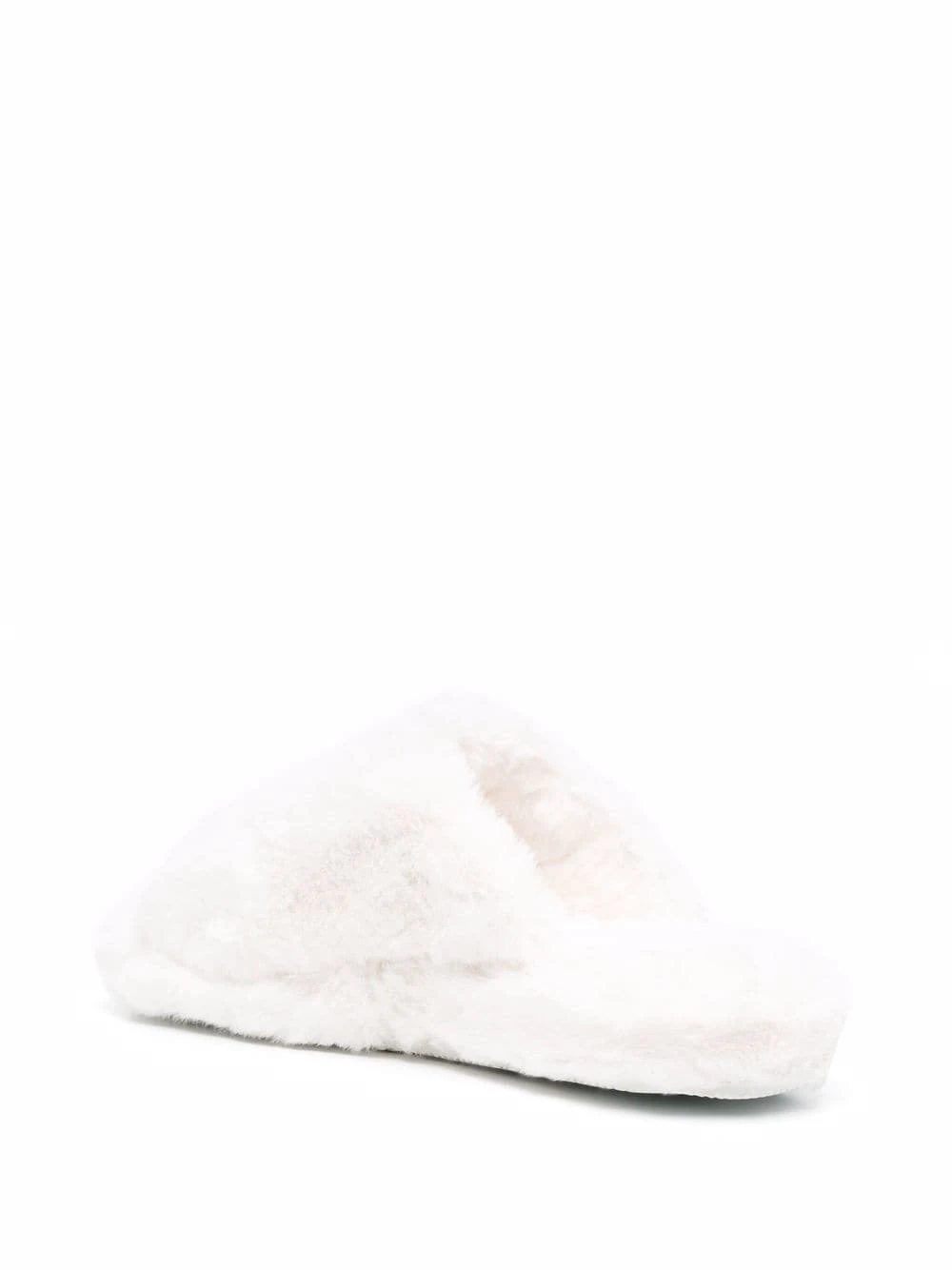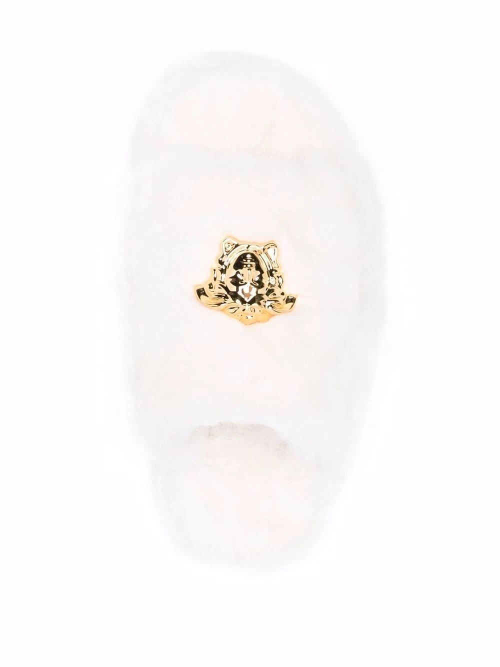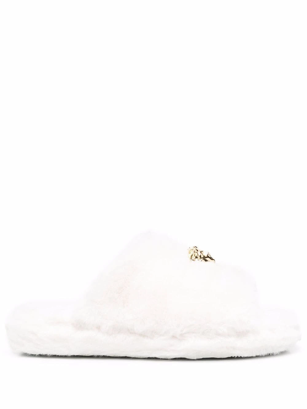 Motif Medusa, bout ouvert, design Ă enfiler, semelle plate. Couleur : blanc.