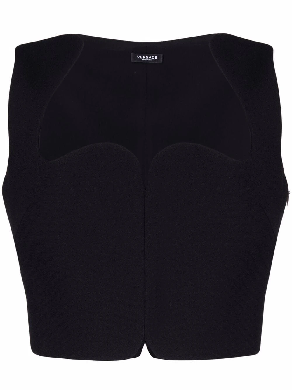 Design ton sur ton, encolure cœur, design sans manches. Couleur : noir. Matière : soie.