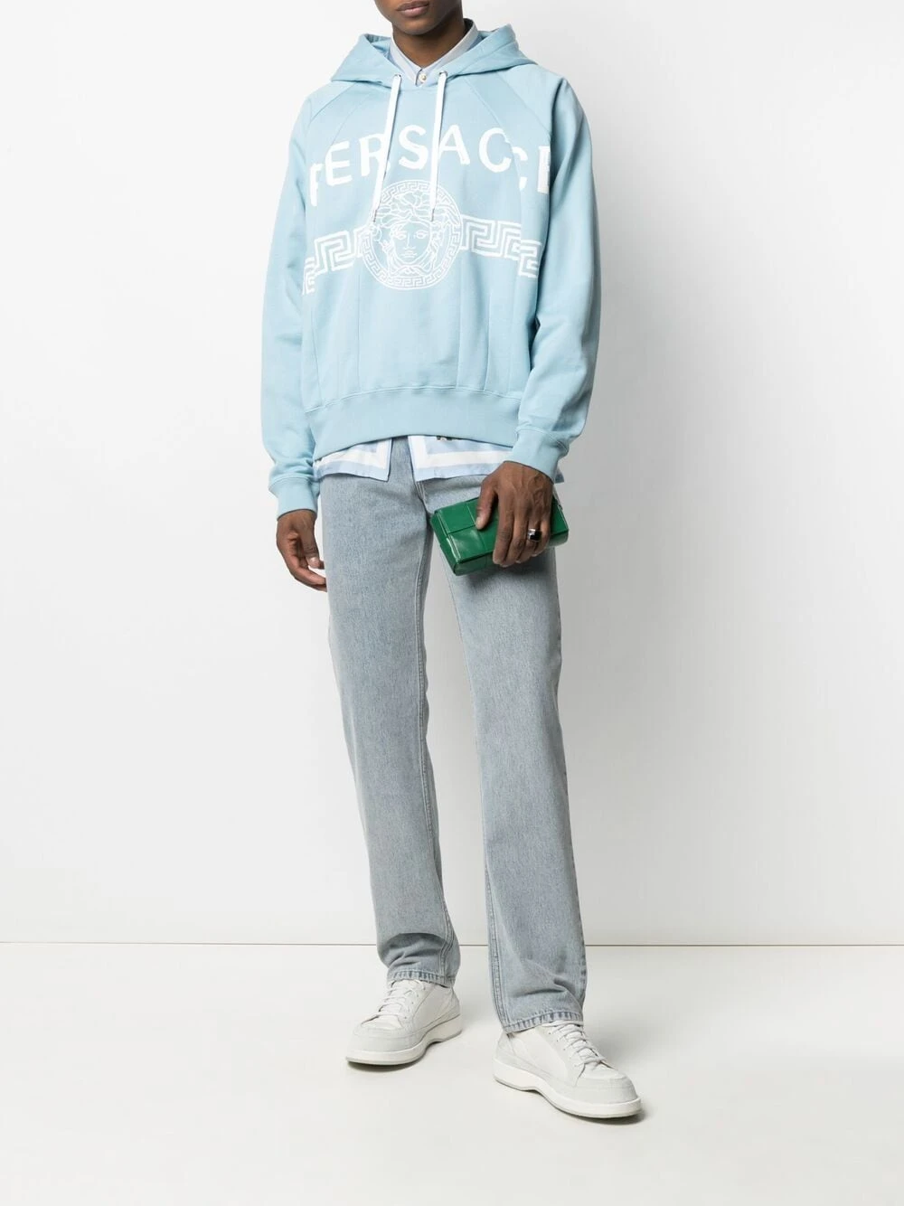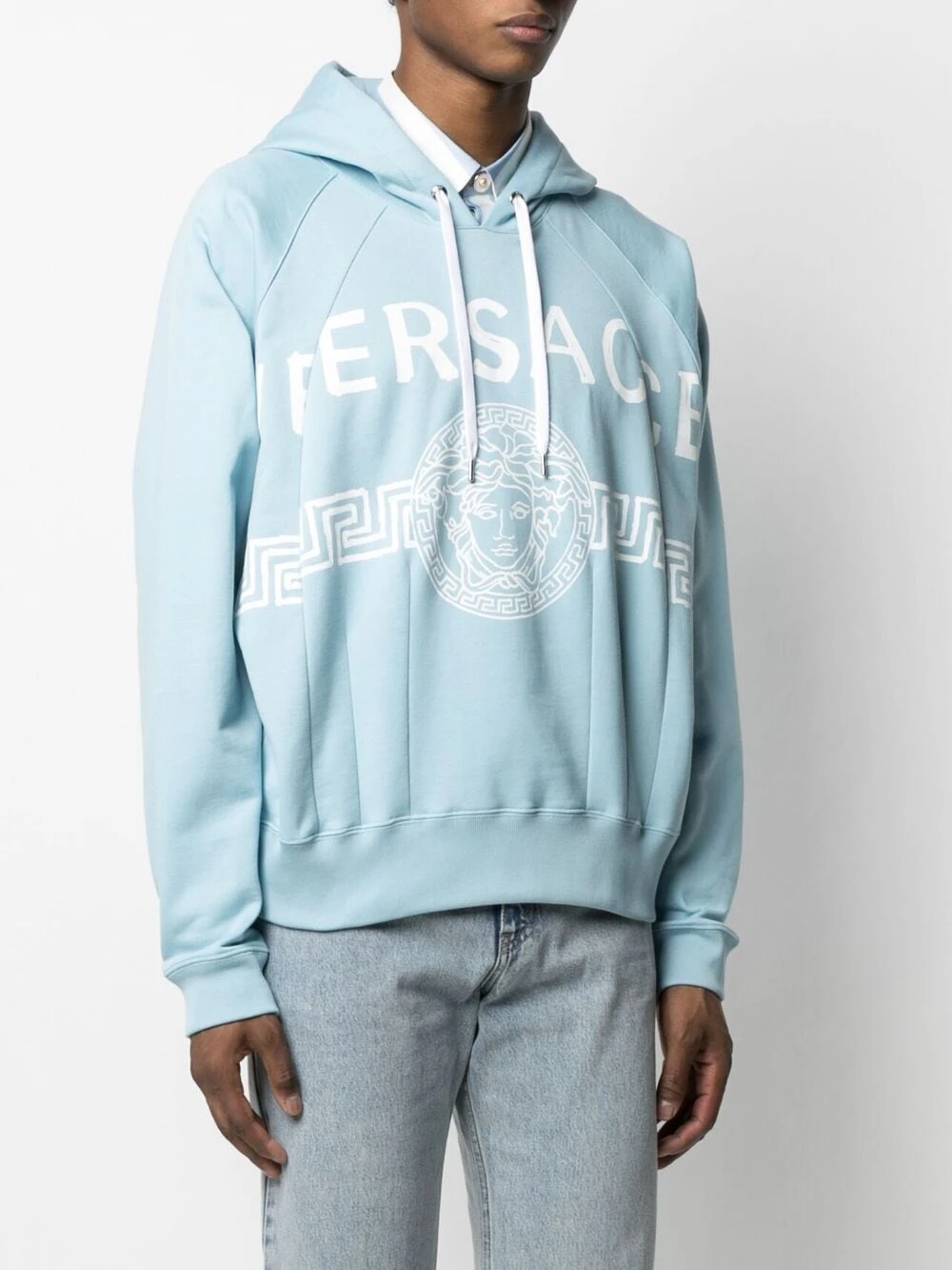 Logo imprimé à la poitrine, motif Medusa, motif Greca signature imprimé, capuche à lien de resserrage, manches longues, bordures nervurées. Matière : coton.