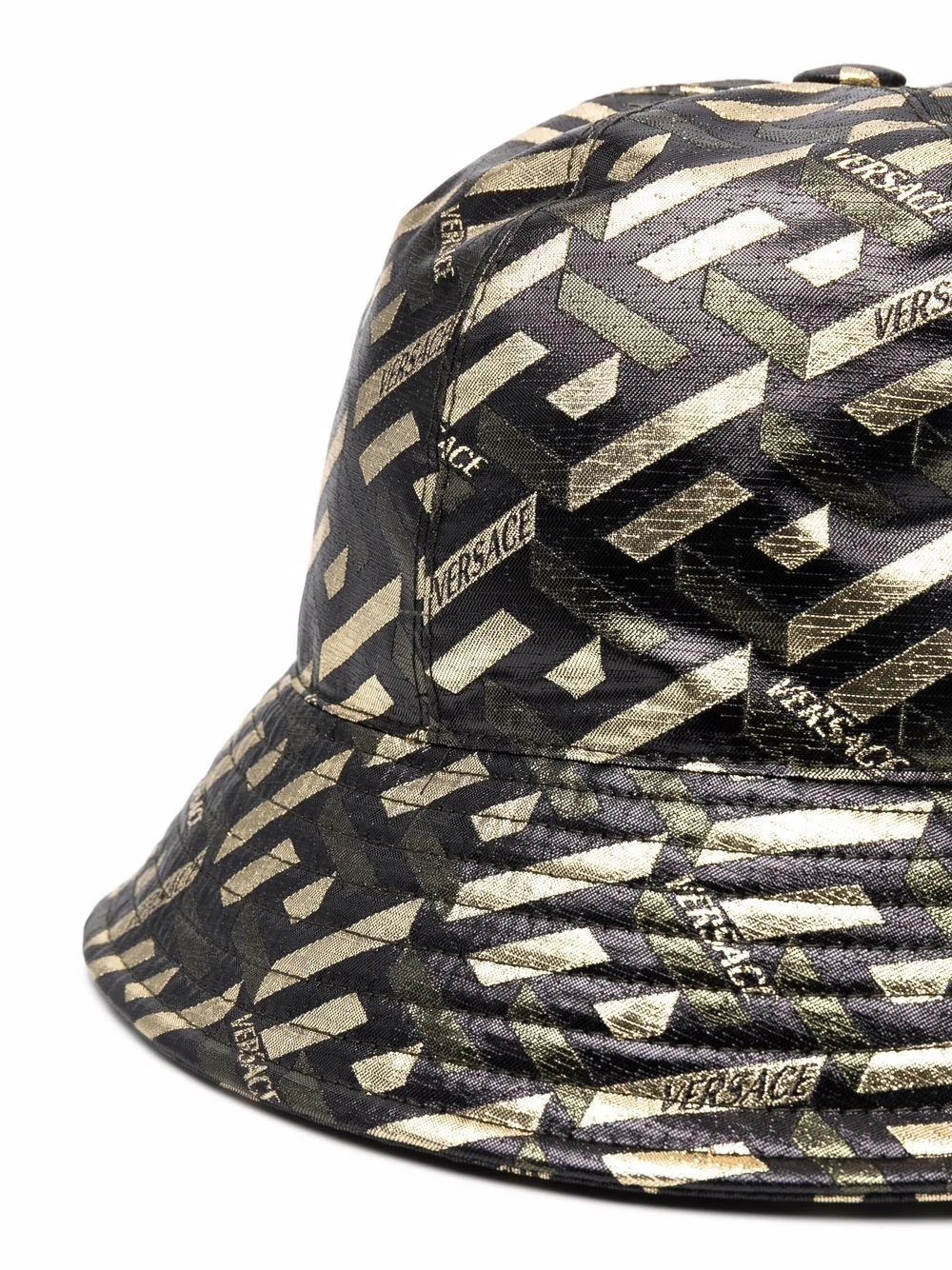 Motif Greca signature imprimé, fini métallisé, coutures ton sur ton, doublure intégrale. Couleur : noir.