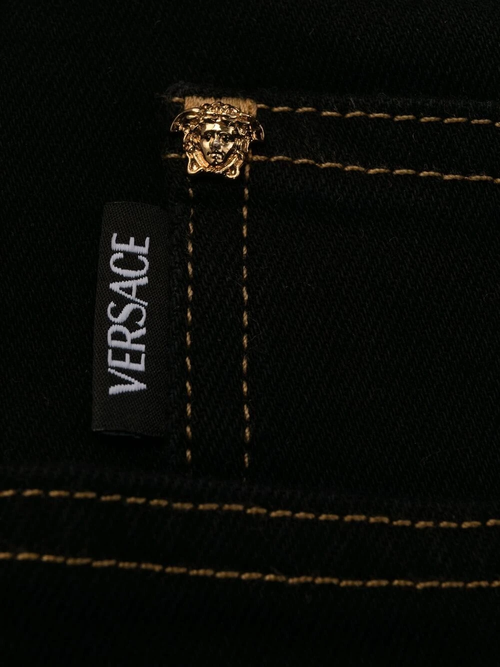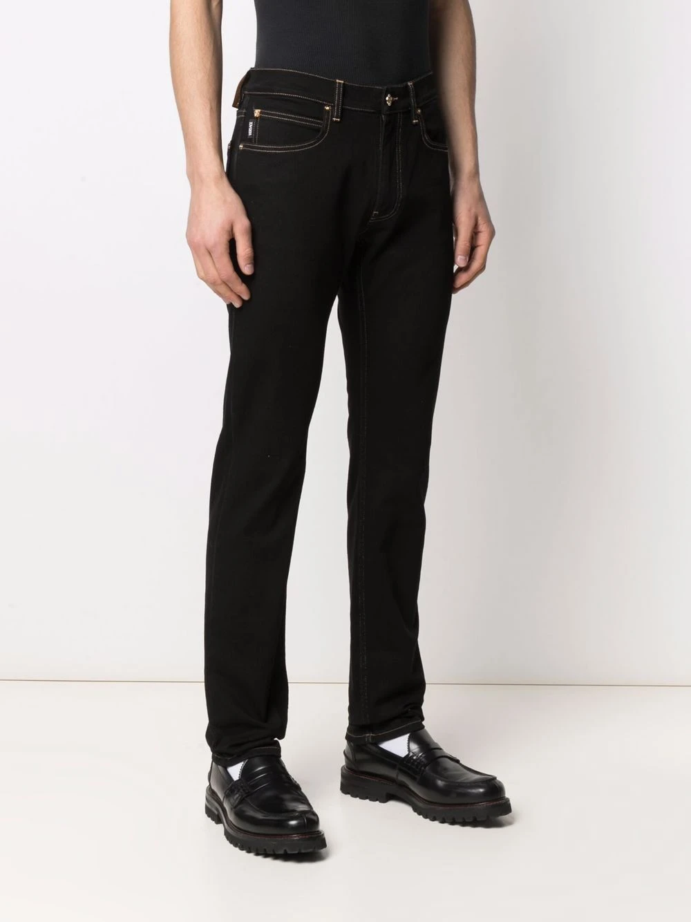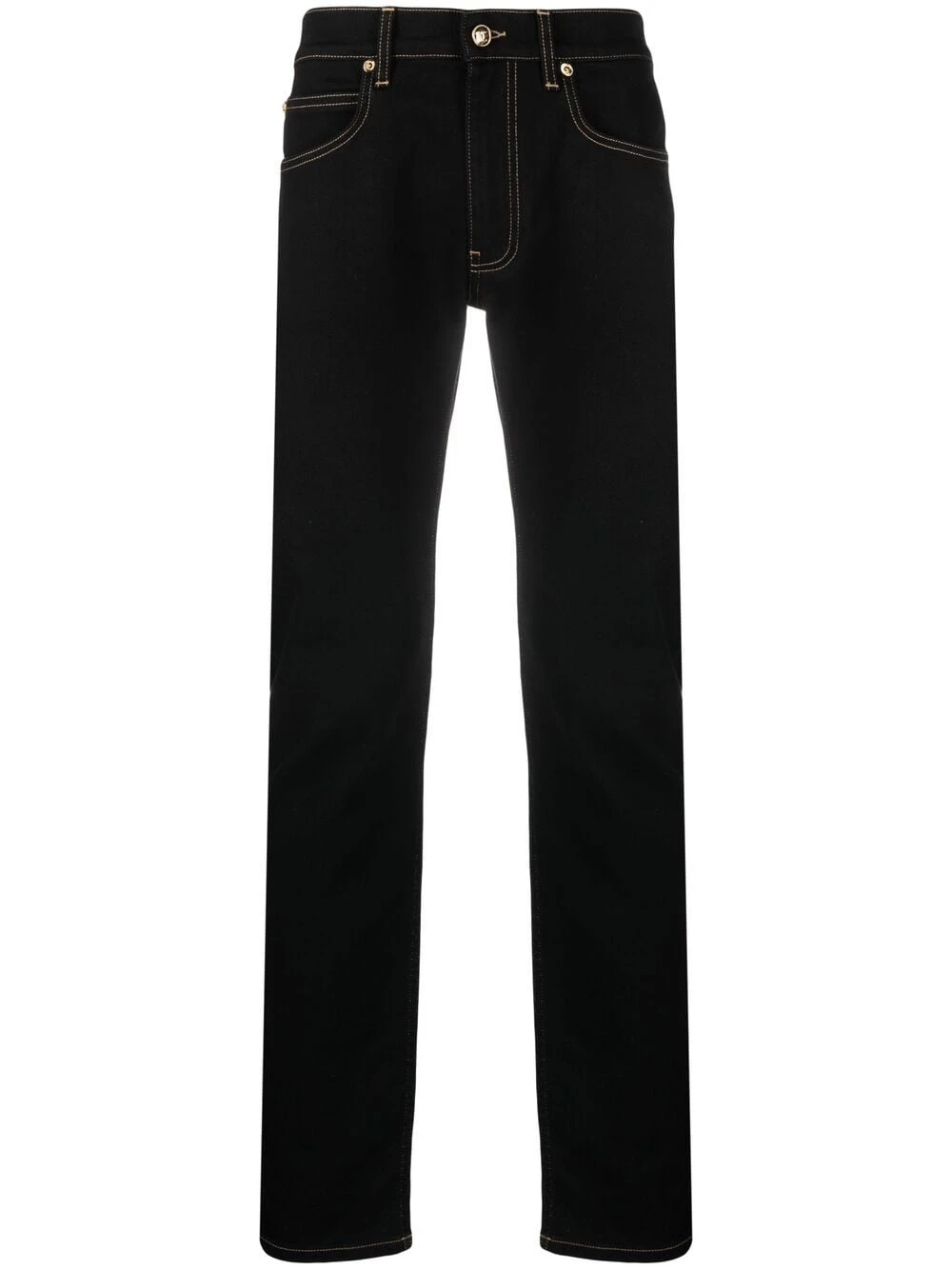 Logo brodé à l’arrière, patch logo sur l’arrière, coutures contrastantes, passants de ceinture, fermeture à zip et boutons sur le devant, 5 poches classiques. Couleur : noir. Matière : coton mélangé.
