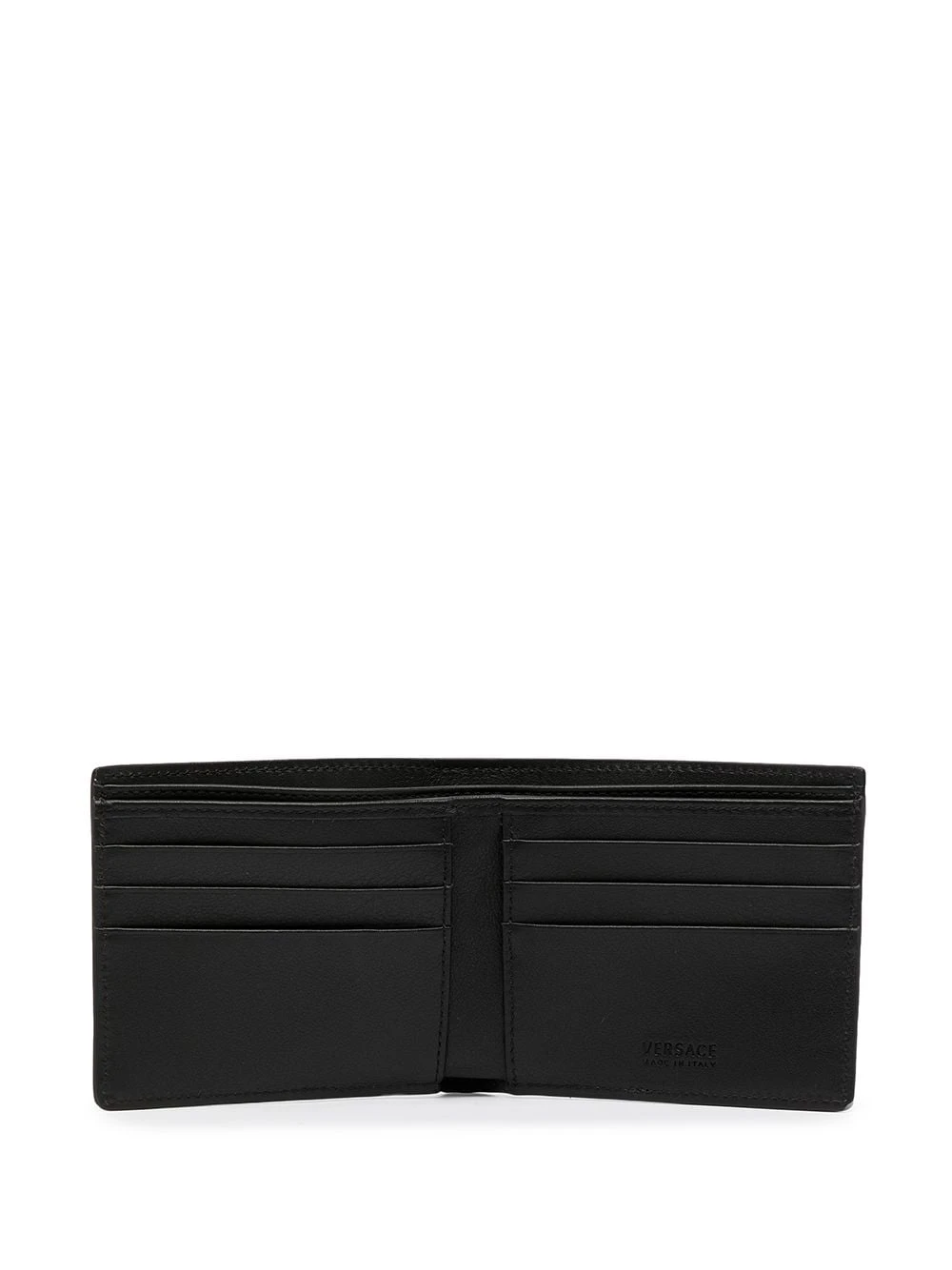 Noir, cuir, effet peau de crocodile, détail Medusa, fentes pour carte, logo imprimé à l’intérieur.