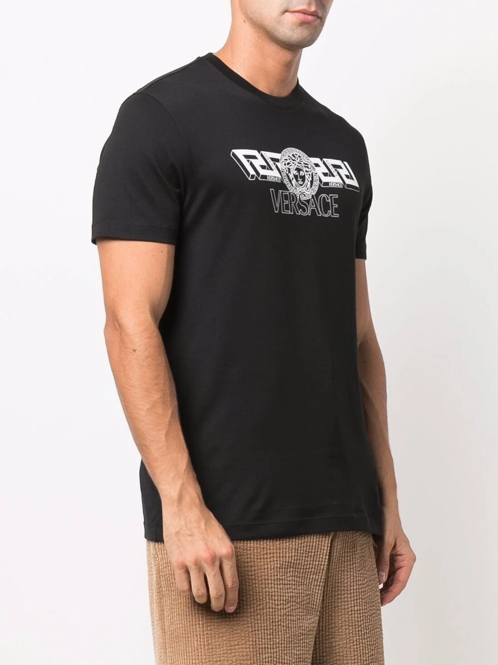Motif Medusa, motif Greca signature imprimé, encolure ronde, manches courtes. Couleur : noir. Matière : coton.
