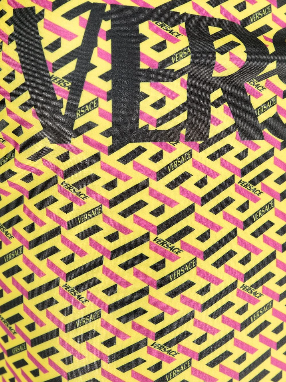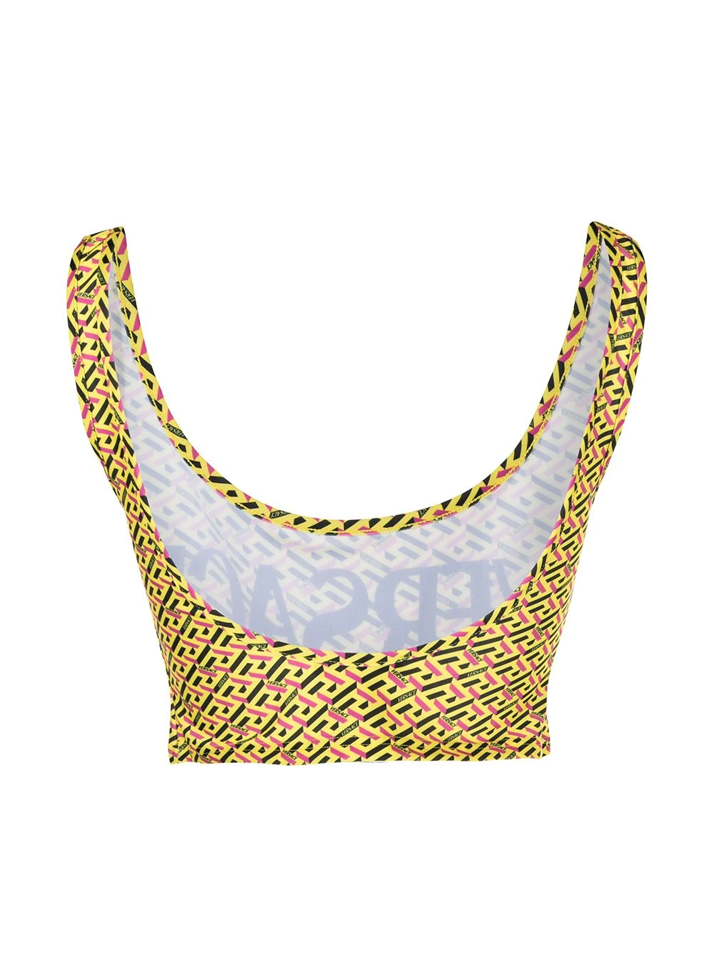 Imprimé La Greca signature, logo imprimé à la poitrine, construction stretch, encolure arrondie, décolleté arrondi dans le dos. Veillez à essayer les maillot de bain par-dessus vos propres sous-vêtements.