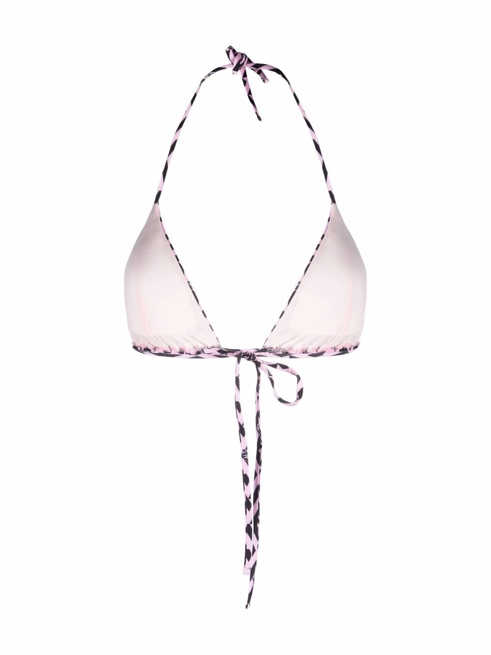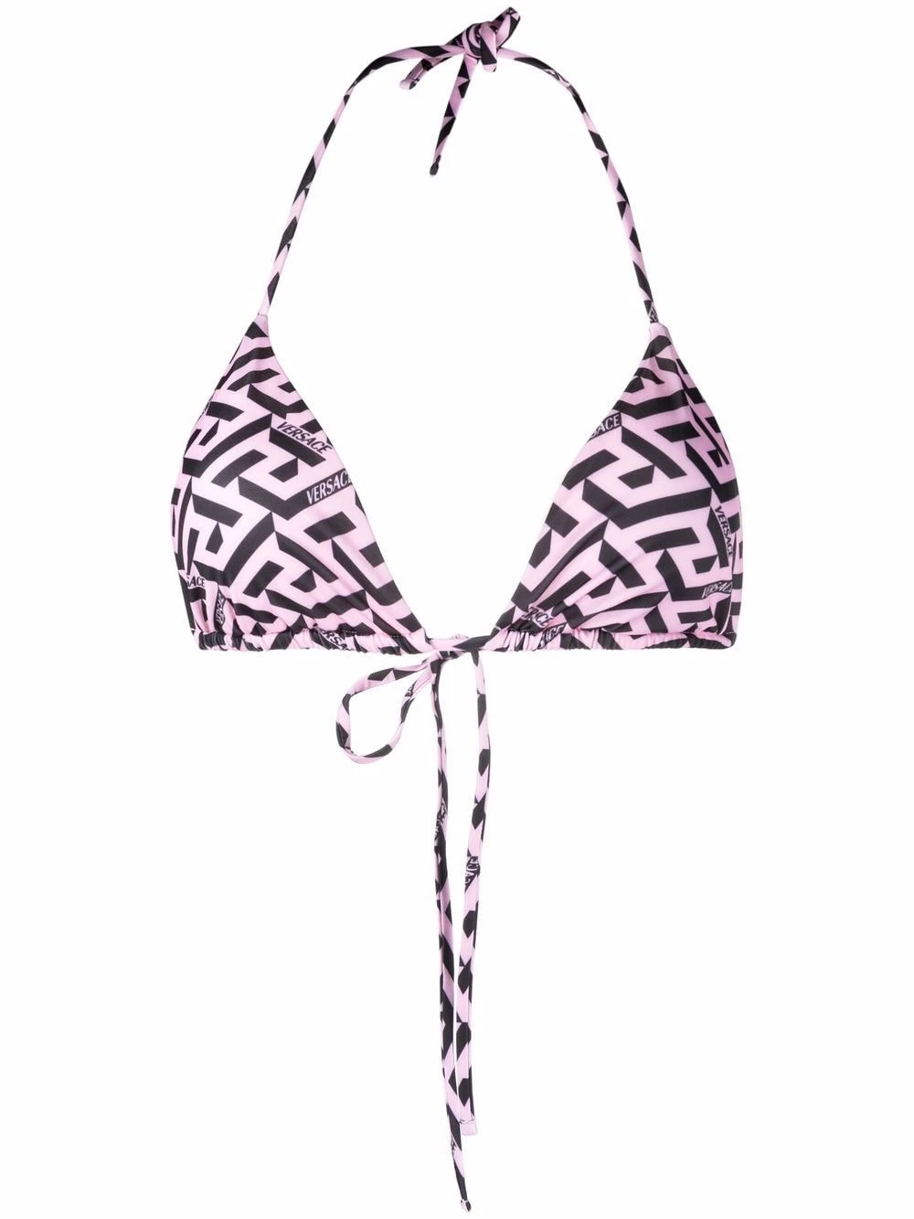 Construction stretch, imprimé monogrammé, bonnets triangles, fermeture dos-nu à nouer, fermeture nouée au dos, doublure intégrale. Couleur : rose. Veillez à essayer les maillot de bain par-dessus vos propres sous-vêtements.