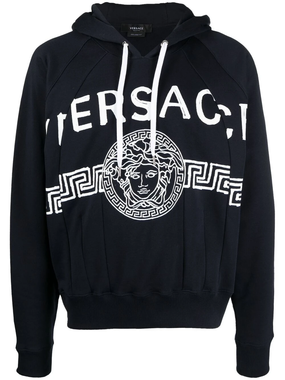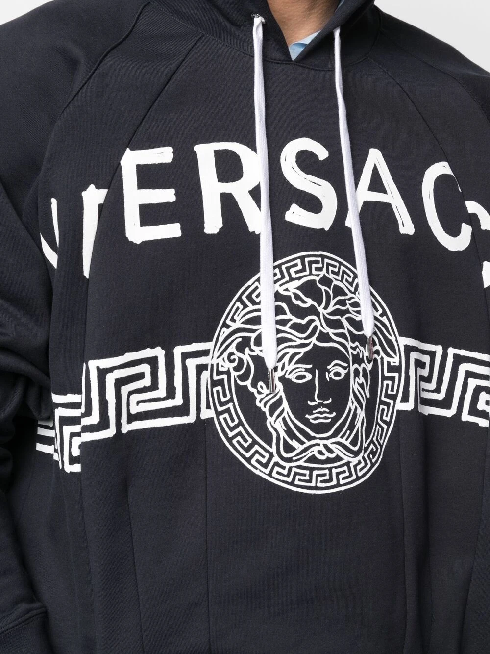 Logo imprimé à la poitrine, motif Medusa, motif Greca signature imprimé, capuche à lien de resserrage, manches longues, bordures nervurées. Matière : coton.