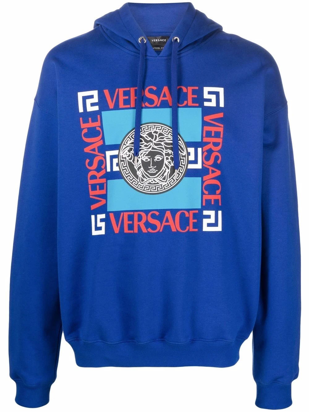 Motif Medusa, logo lettre, capuche à lien de resserrage, effet d’épaules descendues, manches longues, bordures nervurées. Matière : coton.