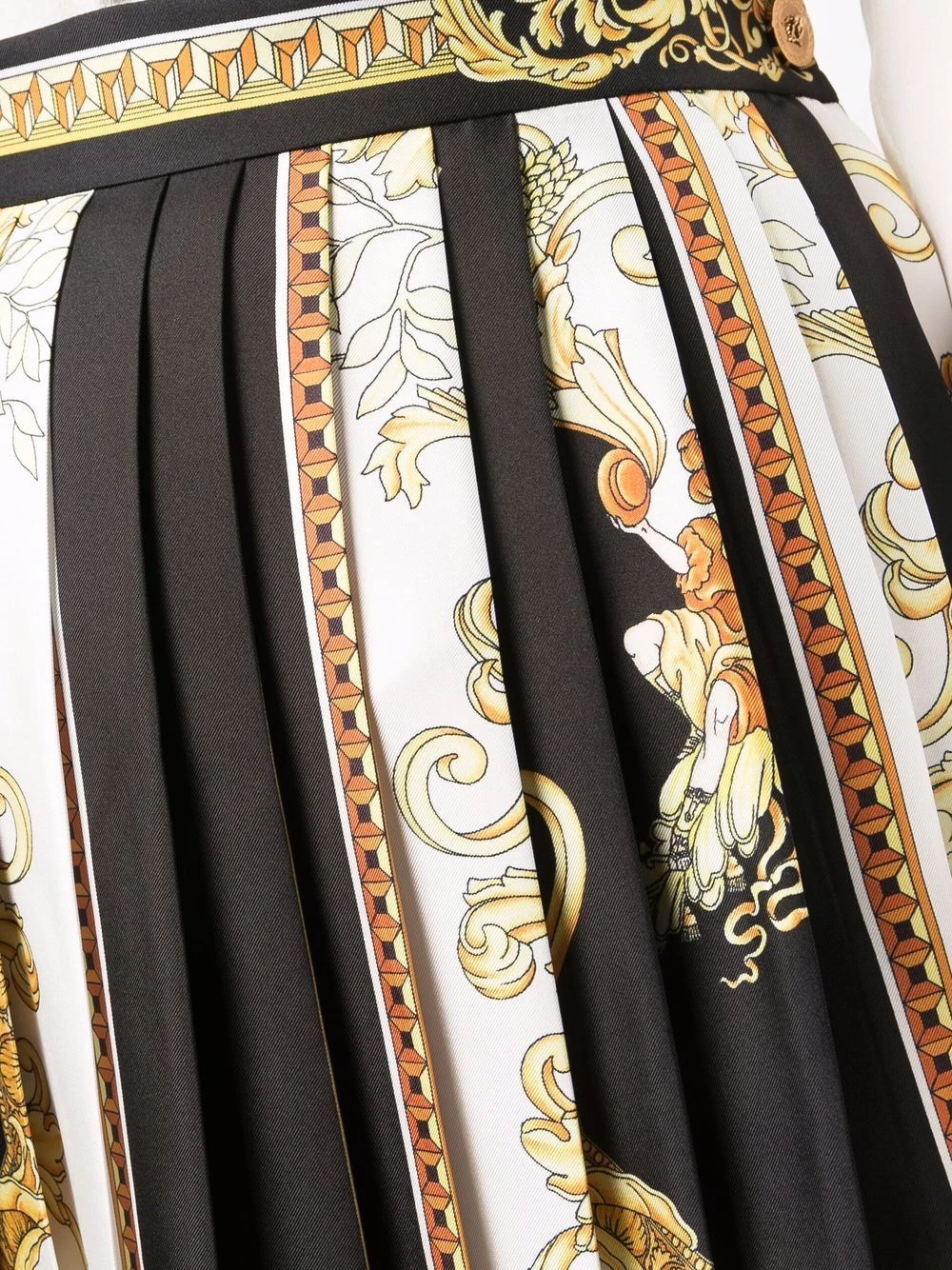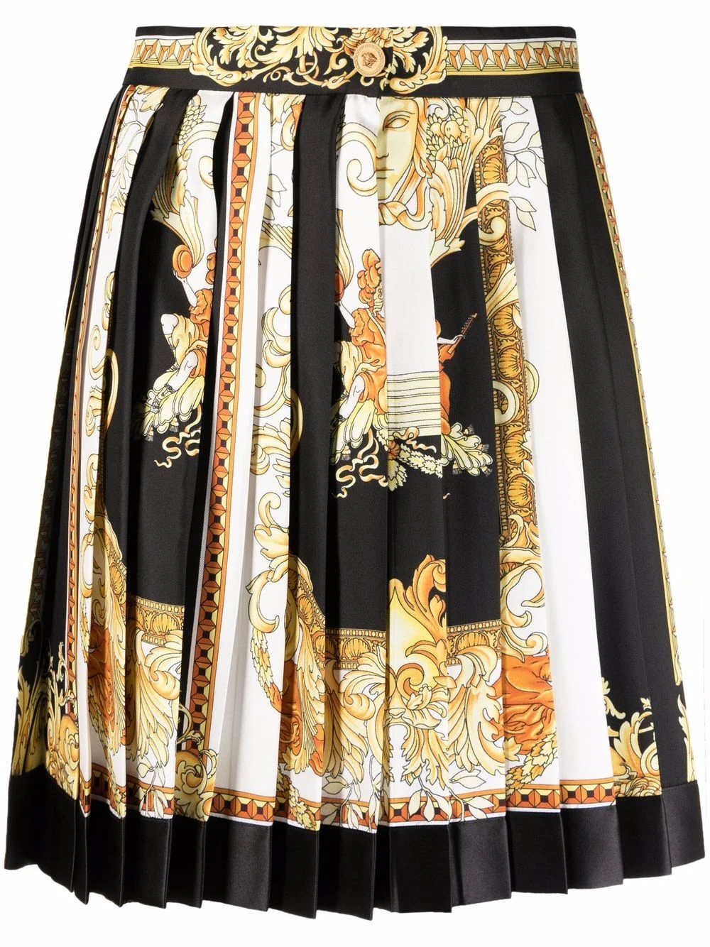 Design plissé, taille haute, imprimé Medusa Renaissance signature, longueur au dessus du genou. Matière : soie.