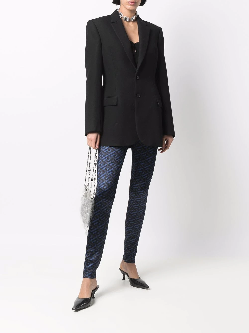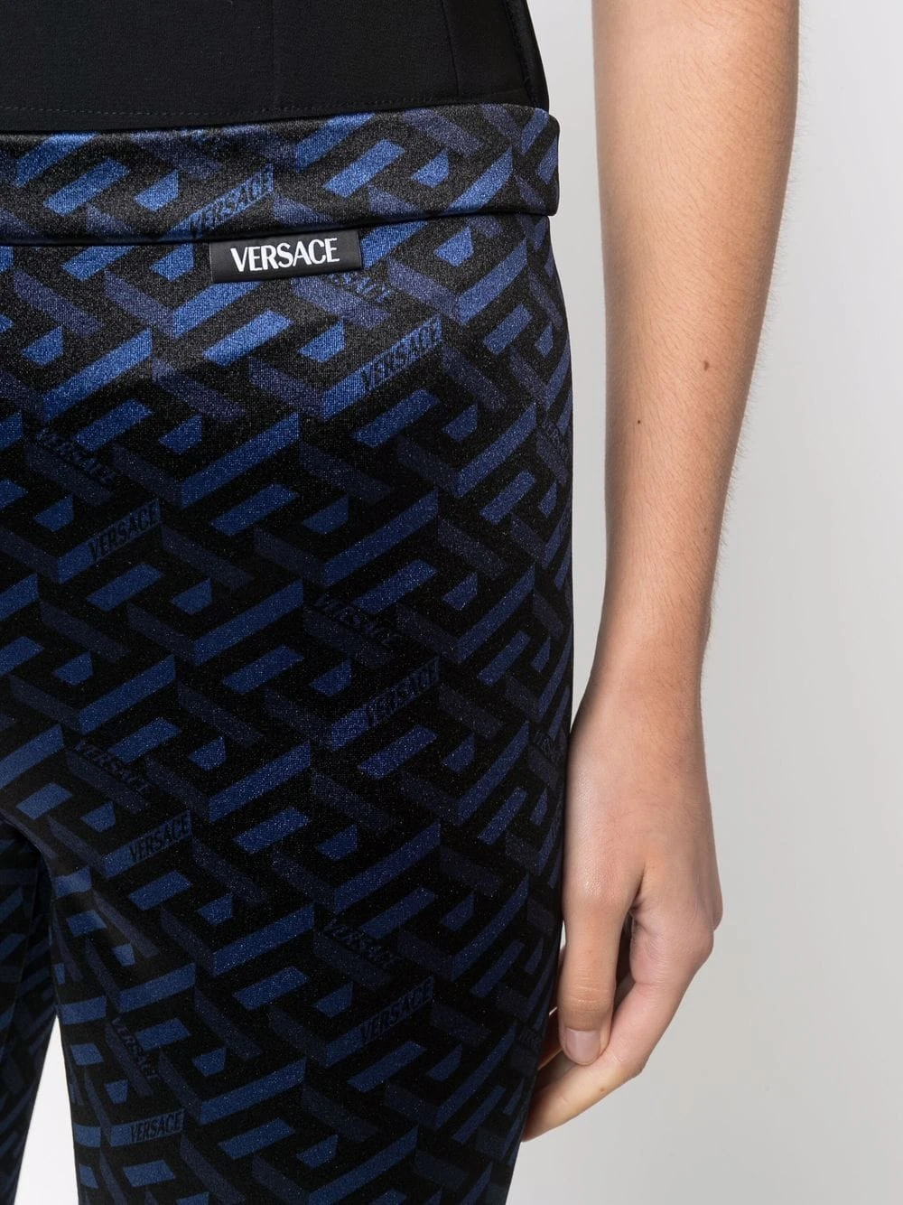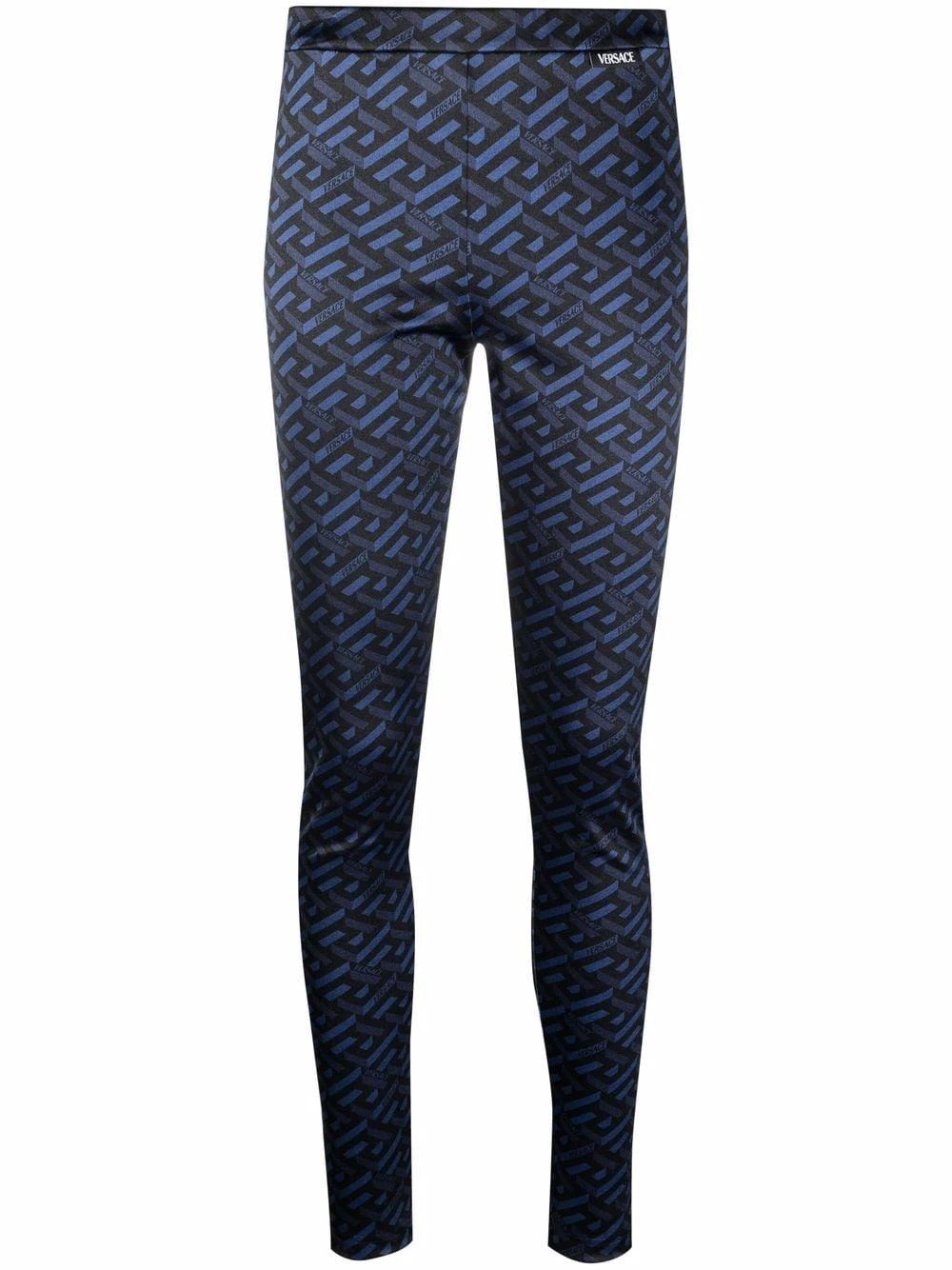 Imprimé La Greca signature, étiquette logo, construction stretch, ceinture élastique. Couleur : bleu.