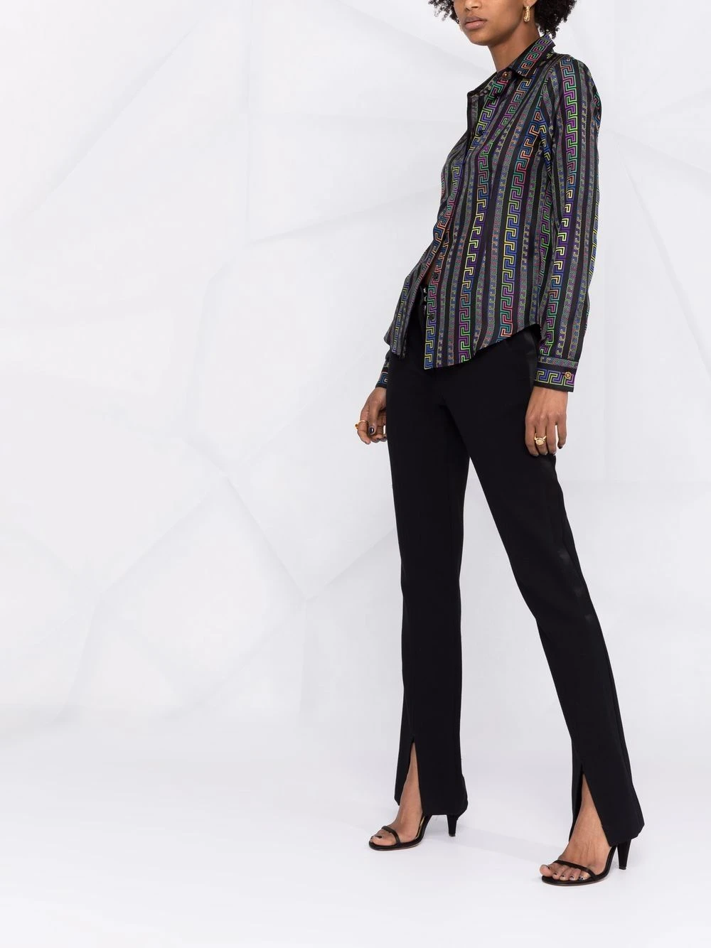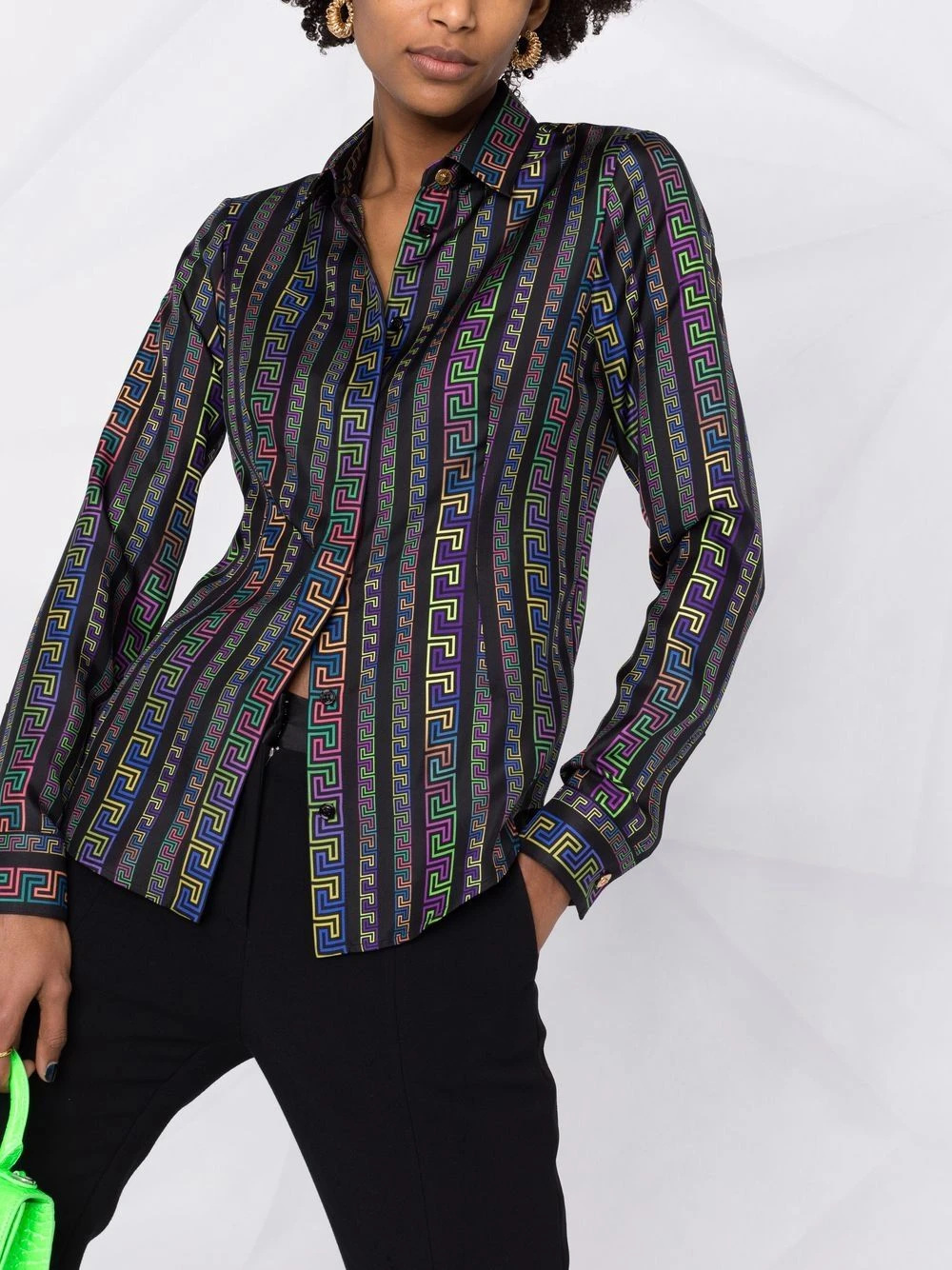 Col classique, patte de boutonnage sur le devant, manches longues, poignets boutonnés, ourlet incurvé. Matière : sergé de soie.
