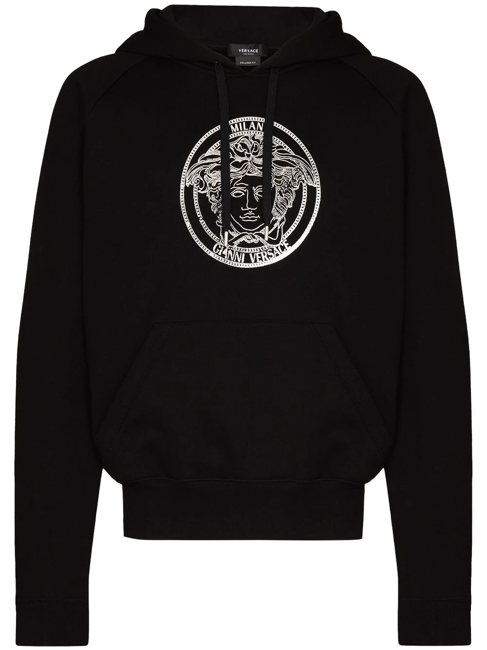 Capuche à lien de resserrage, logo imprimé à la poitrine, poignets élastiqués, ourlet élastiqué. Couleur : noir. Matière : coton.