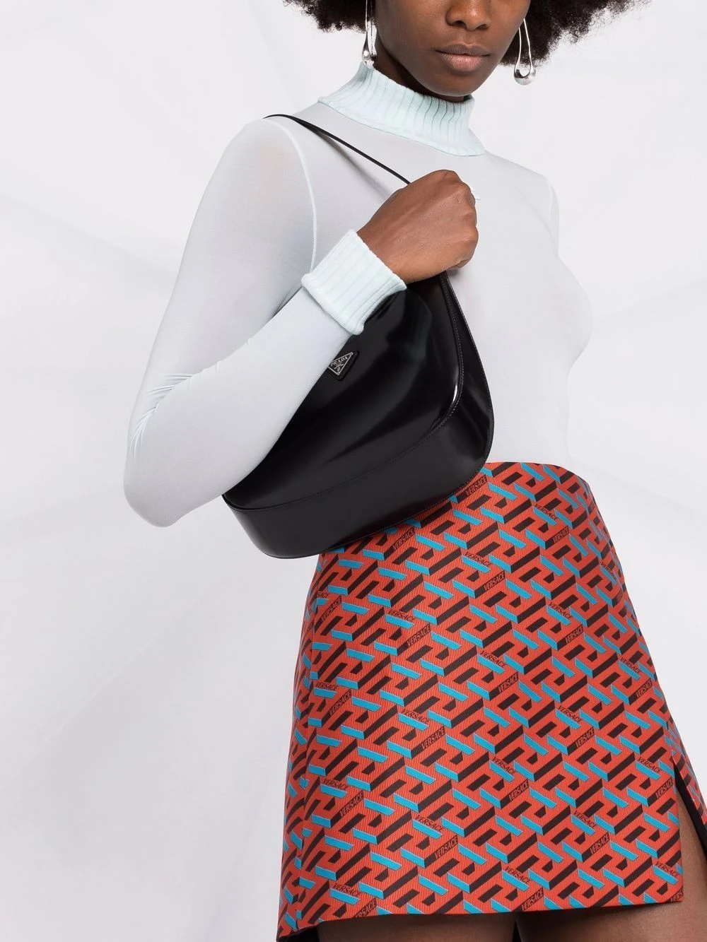 Imprimé La Greca signature, imprimé monogrammé, taille haute, fente latérale, doublure intégrale.