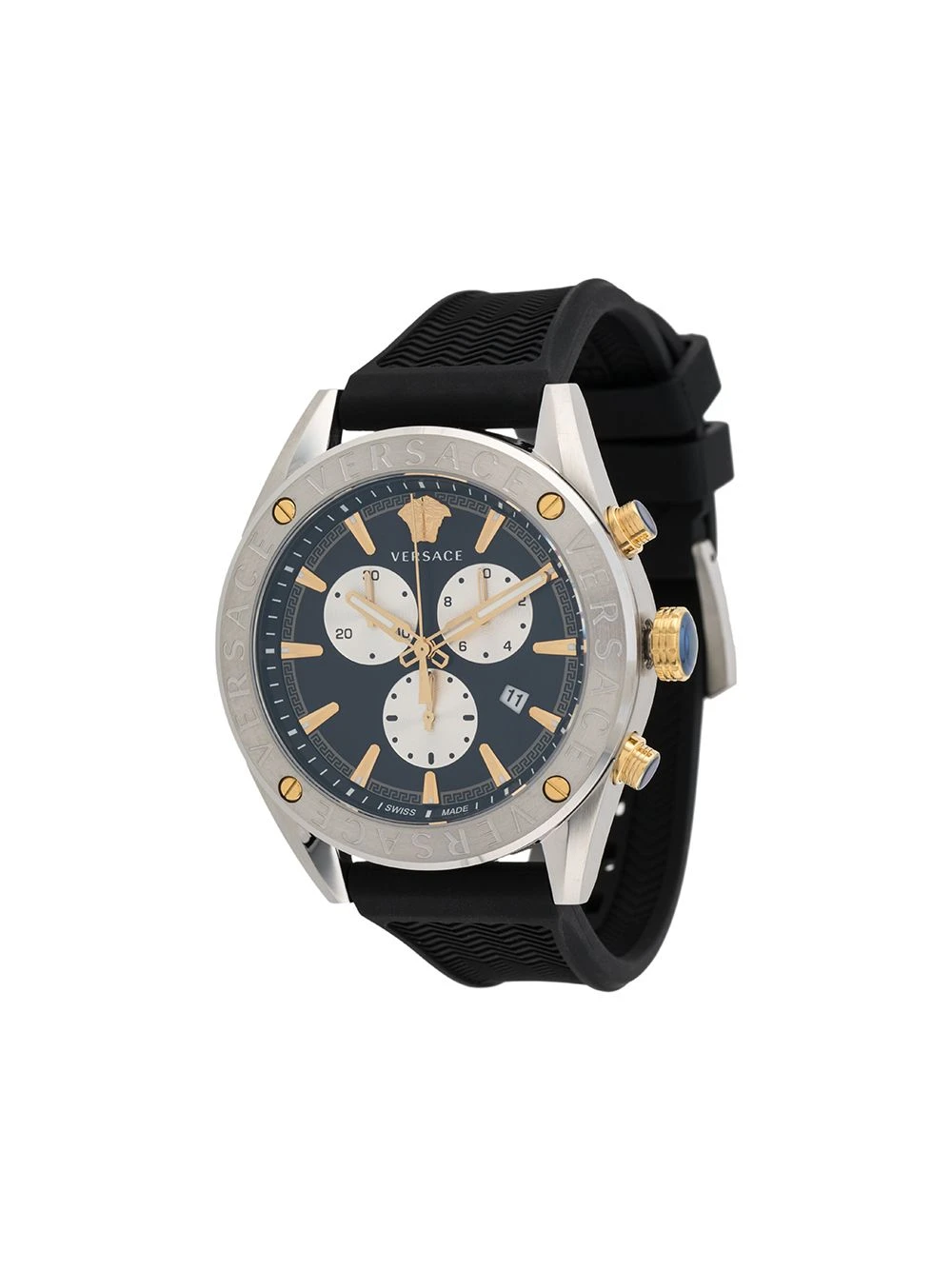 Montre V-Chrono 44 mm en acier inoxydable Versace avec cadran rond, un mouvement à quartz et fermeture à boucle. Couleur : noir.