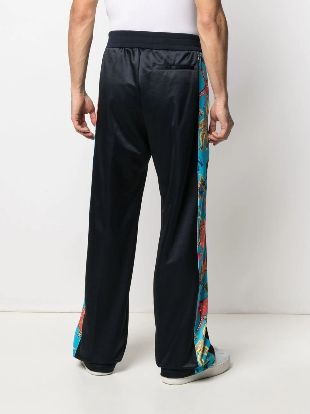 Logo imprimé sur la cuisse, design à empiècements, coupe droite, ceinture élastique, deux poches latérales fendues, poche arrière passepoilée.