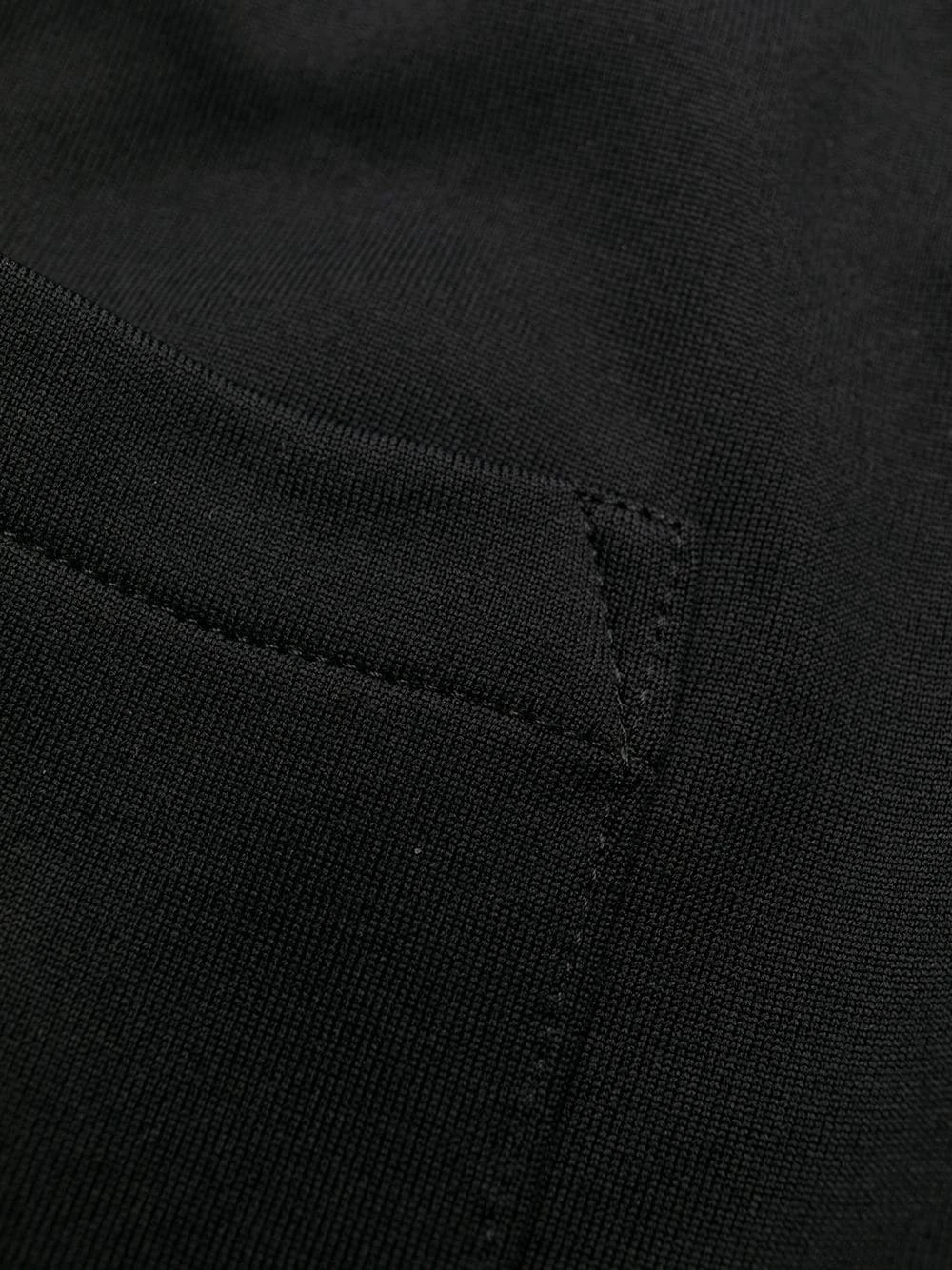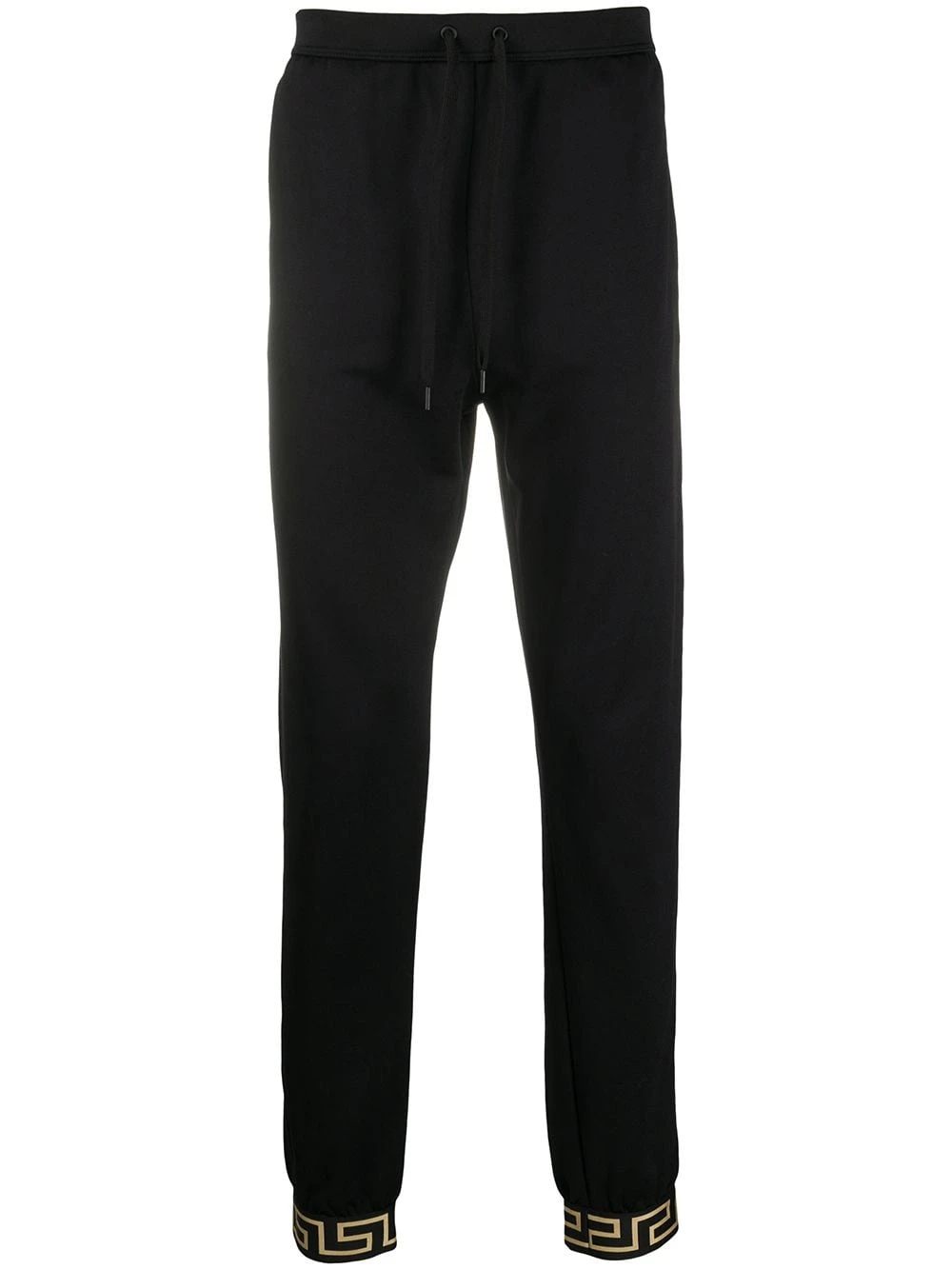 Ceinture élastique, lien de resserrage, poches latérales fendues, poche arrière plaquée, détail Greca signature. Couleur : Noir.