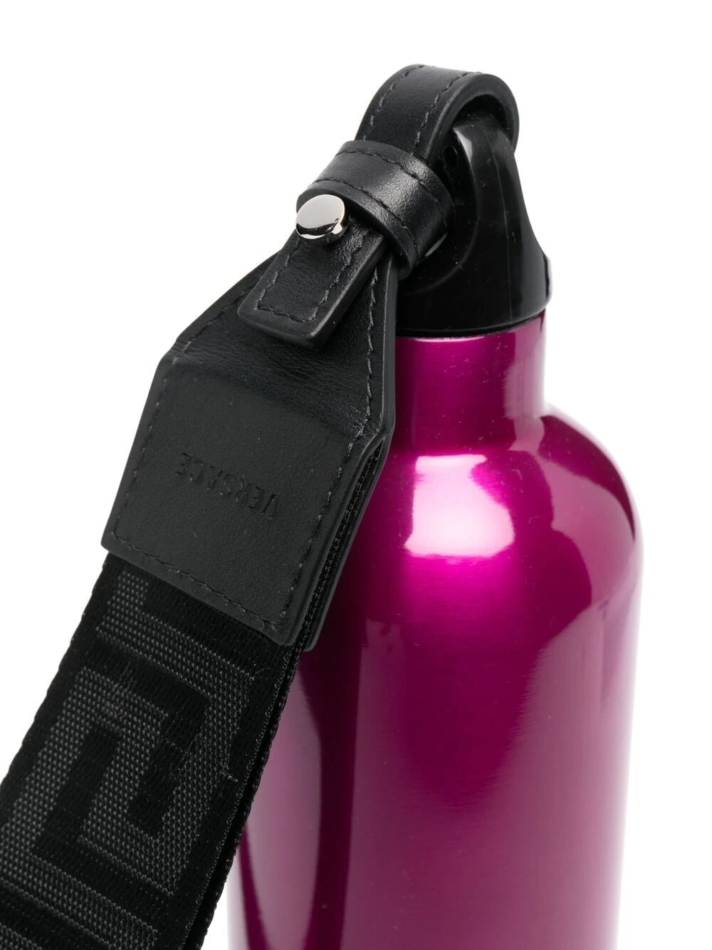 Logo imprimé sur le devant, bride porté autour du cou détachable, couvercle à visser.