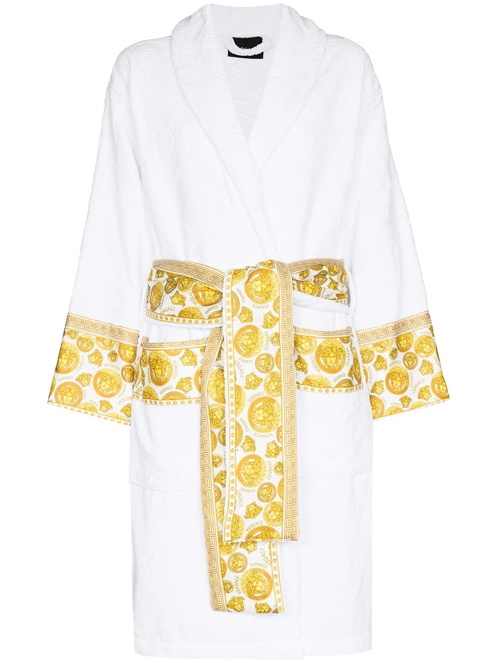 Motif Medusa, taille ceinturée, manches longues. Couleur : blanc. Matière : coton.