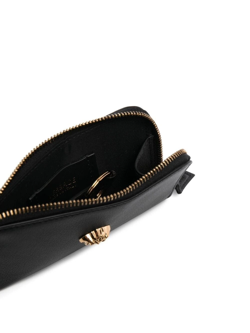 Détail Medusa, finitions en métal doré, fermeture zippée tout autour, compartiment principal. Couleur : noir. Matière : cuir.