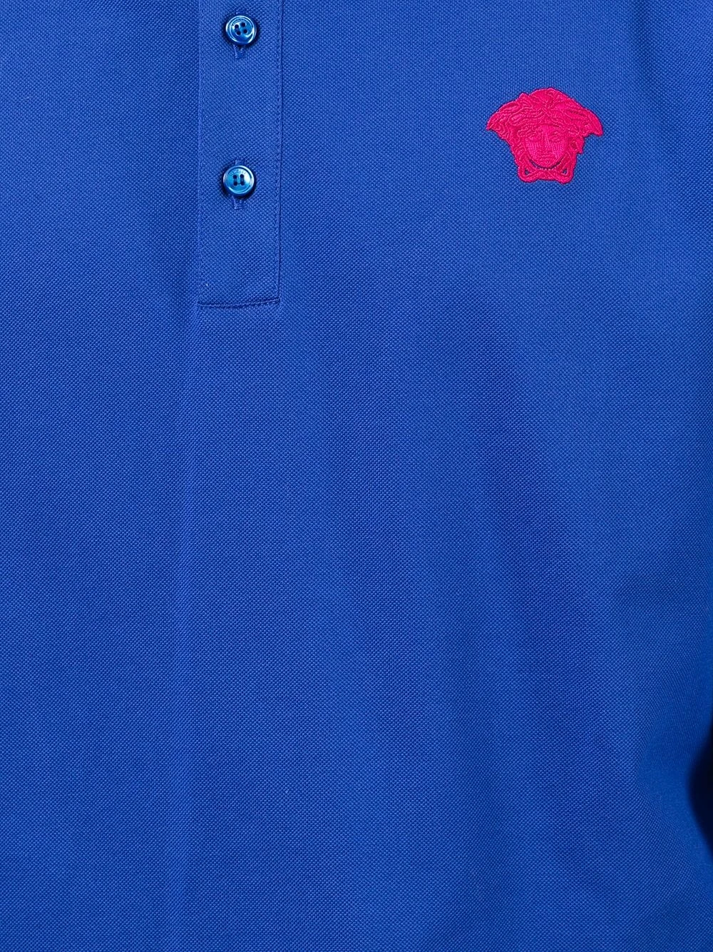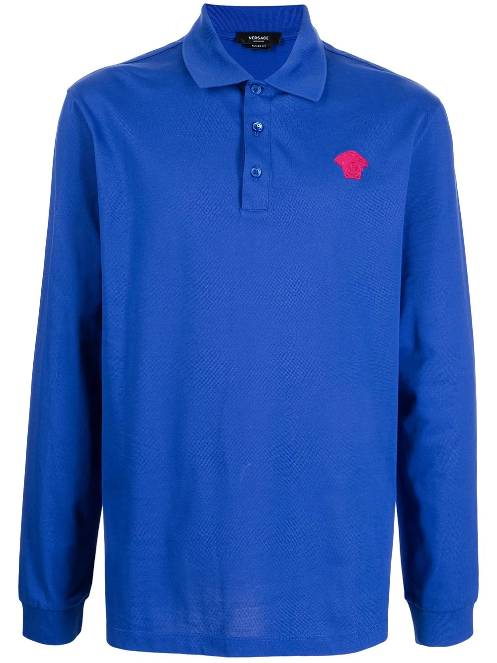 Motif Medusa, col italien, boutonnière sur le devant, manches longues, ourlet droit. Couleur : bleu. Matière : coton.