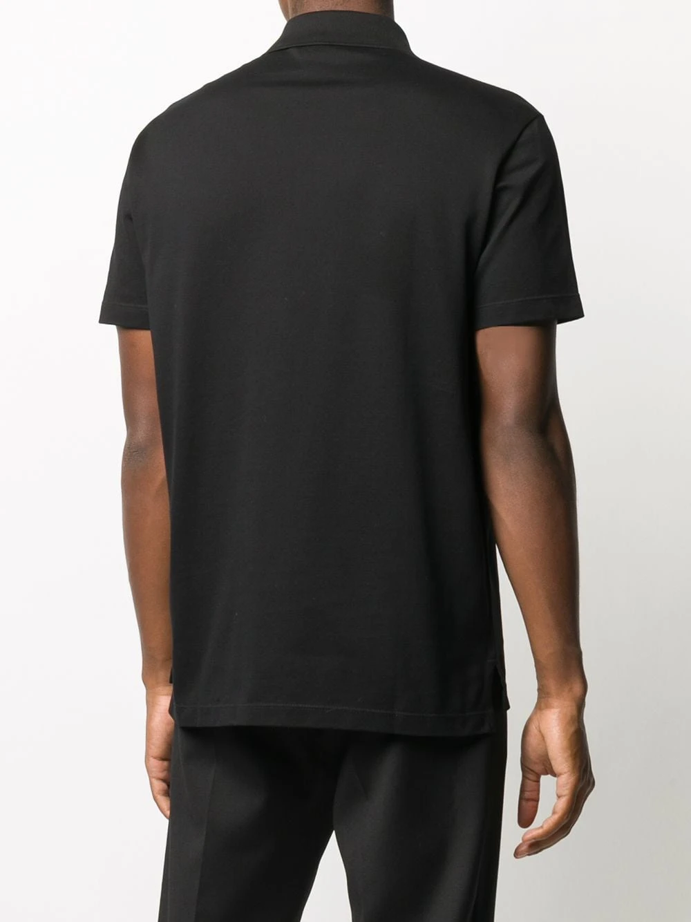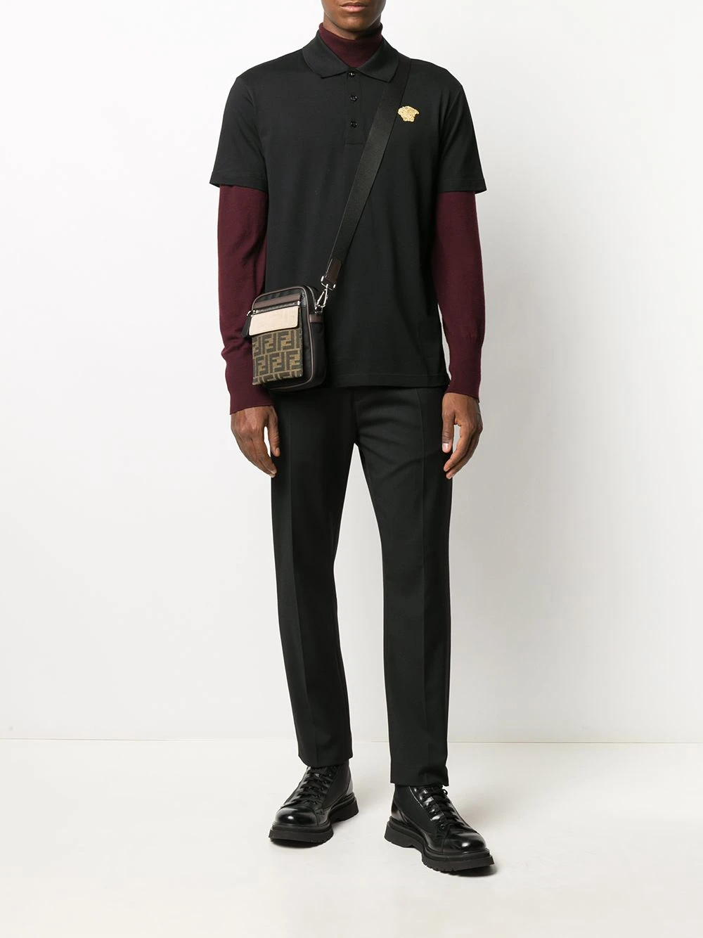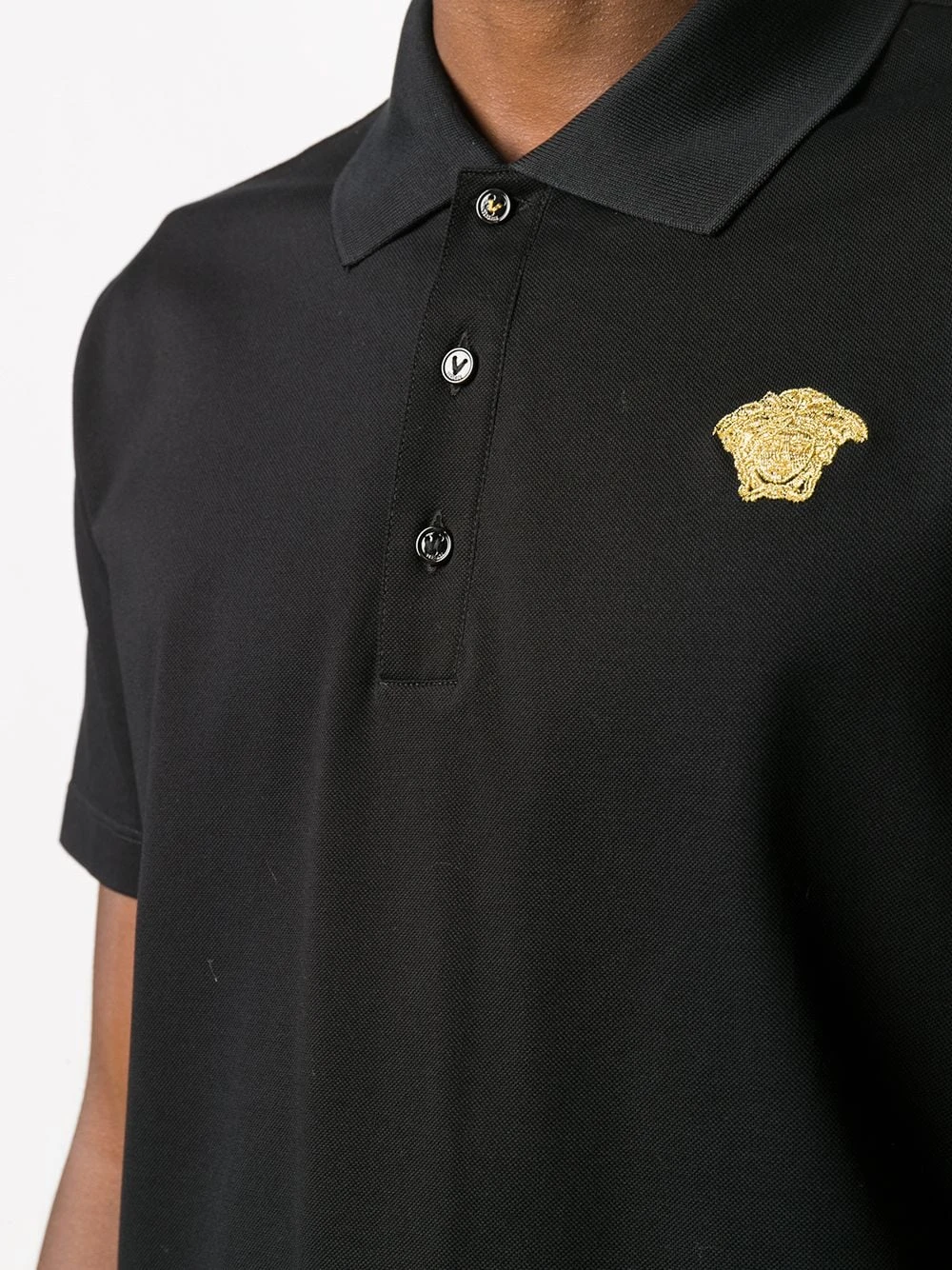 Motif Medusa, col italien, patte de boutonnage sur le devant, manches courtes. Couleur : noir. Matière : coton.