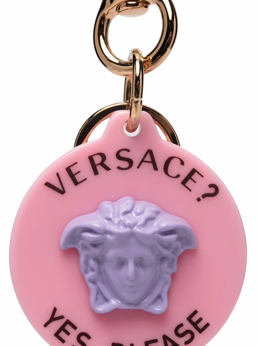 Finitions en métal doré, motif Medusa, breloque à logo, fermoir clip. Matière : métal.