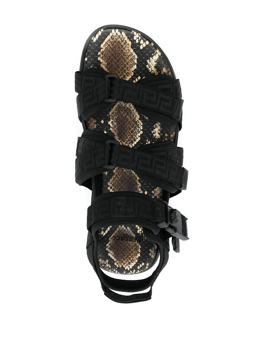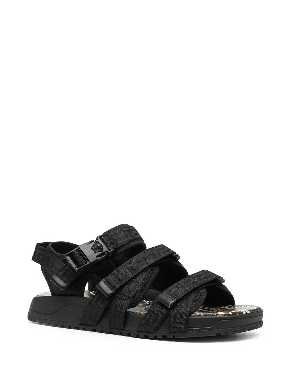 Bout ouvert, fermeture scratch, semelle intérieure à logo, semelle crantée en caoutchouc. Couleur : noir.