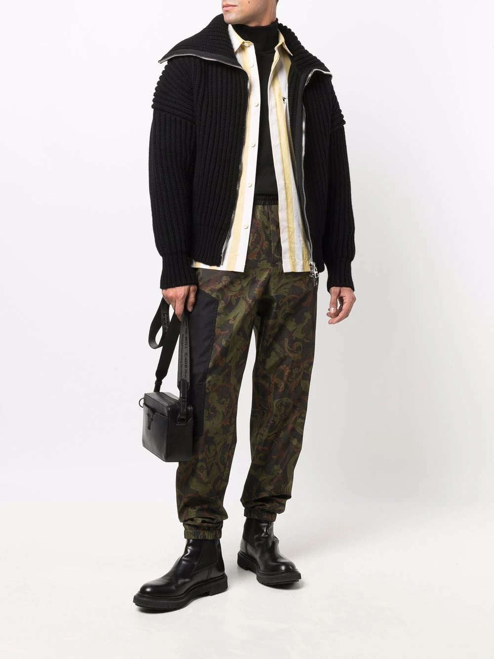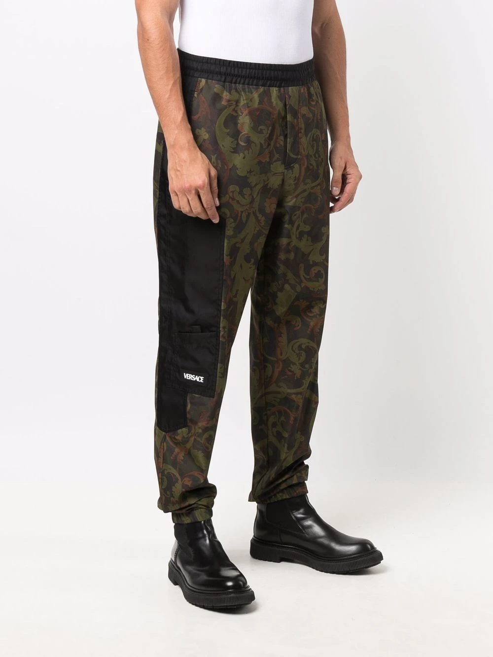 Motif baroque, patch logo sur le côté, design à empiècements, ourlet élastiqué, poches arrière passepoilées, coupe fuselée.