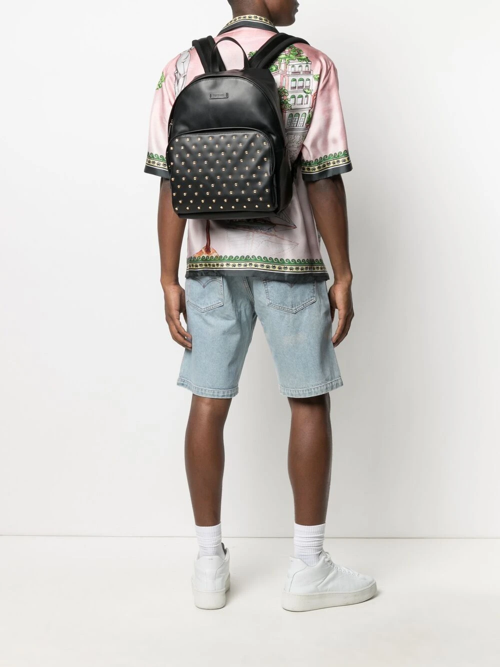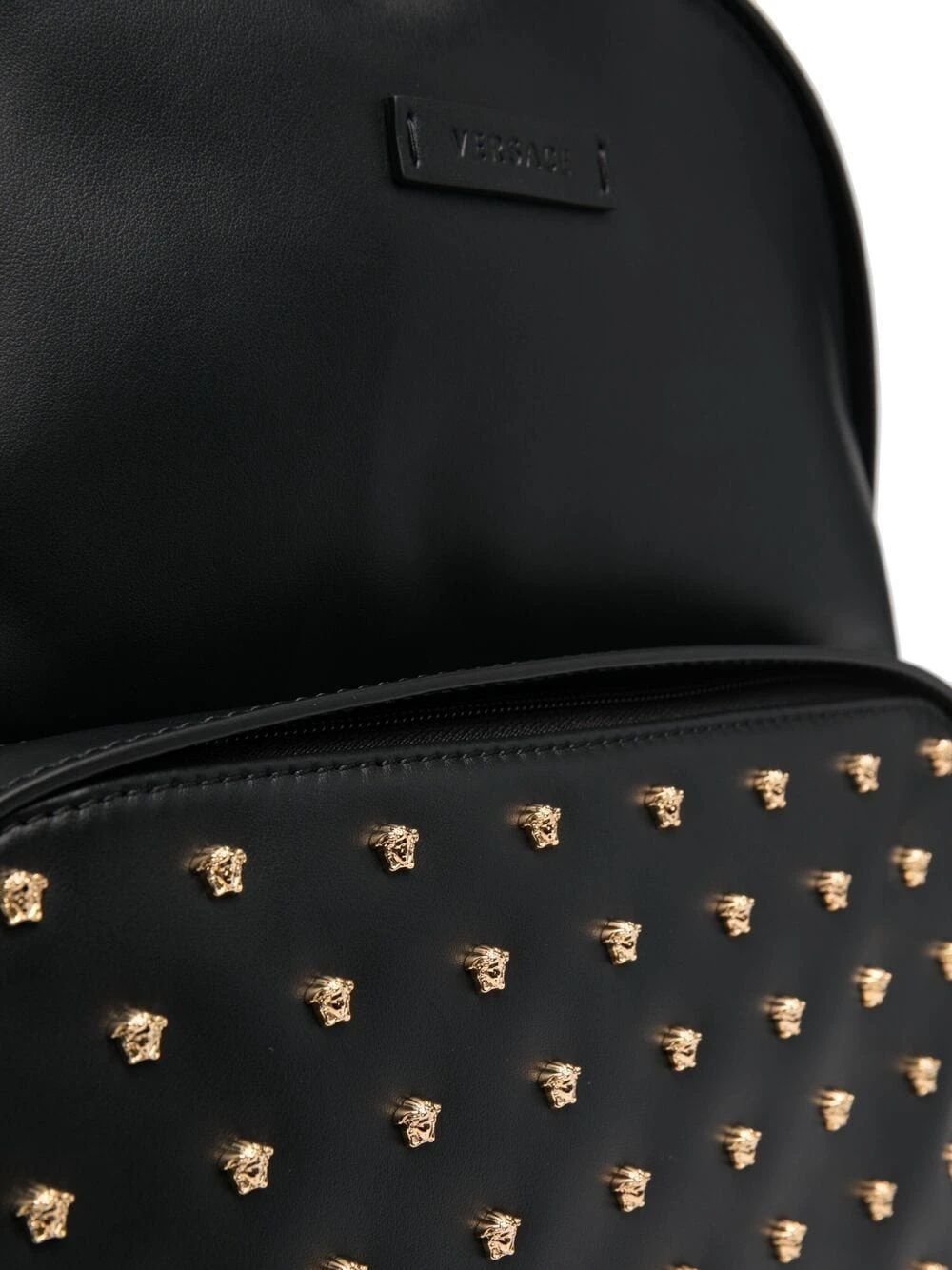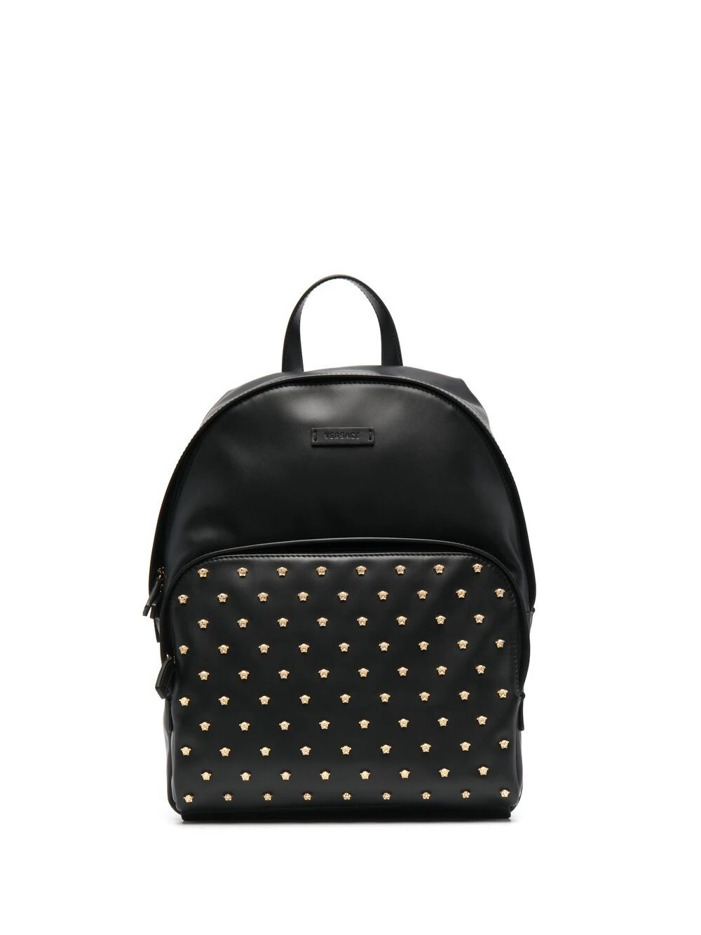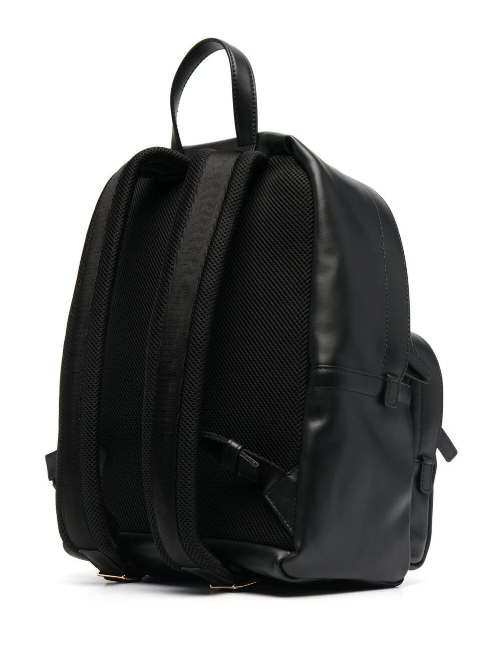 Détail Medusa, patch logo sur le devant, fermeture zippée sur le dessus, compartiment zippé sur le devant, anse arrondie, deux brides porté épaule ajustables. Couleur : noir.