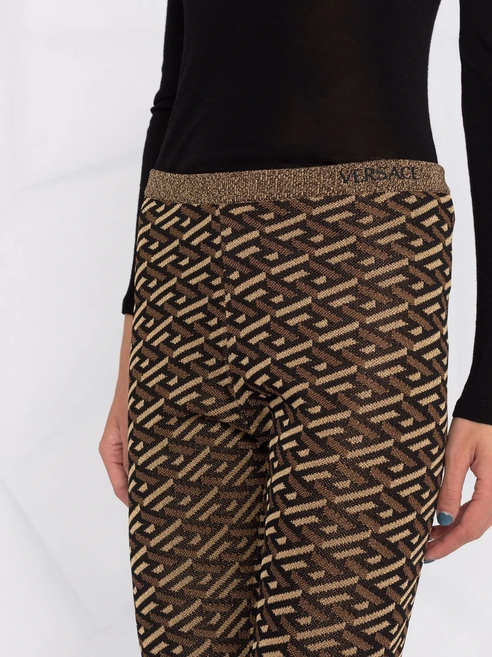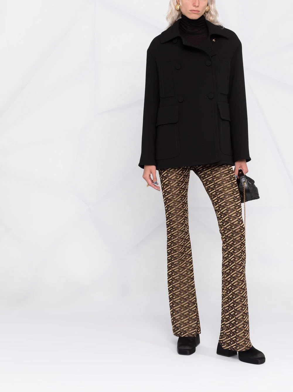 Motif intarsia, logo intarsia, taille haute, coupe évasée.