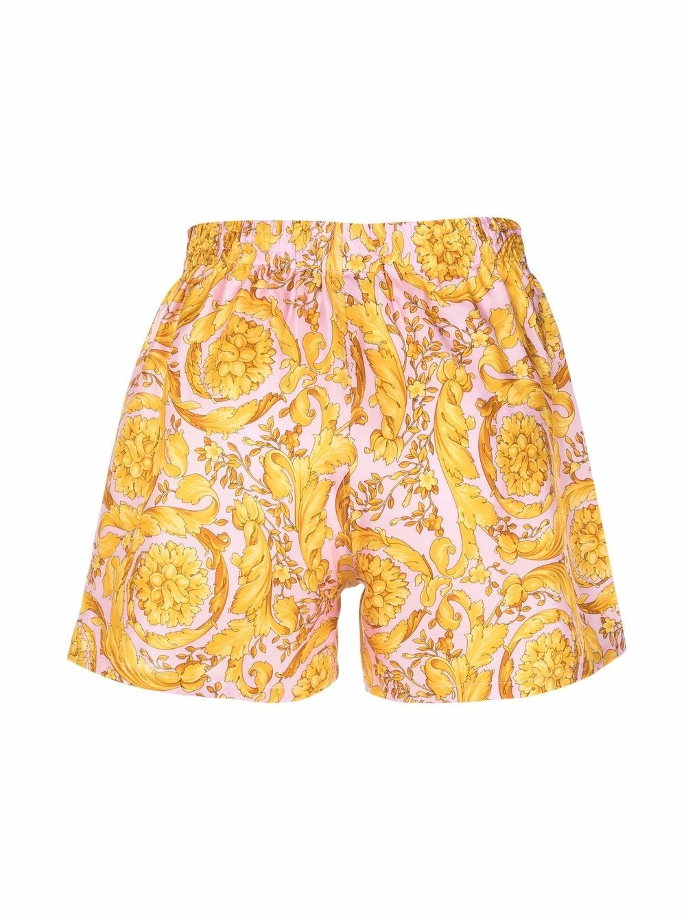 Imprimé Barocco signature, boutons décoratifs, ceinture élastique. Matière : soie.