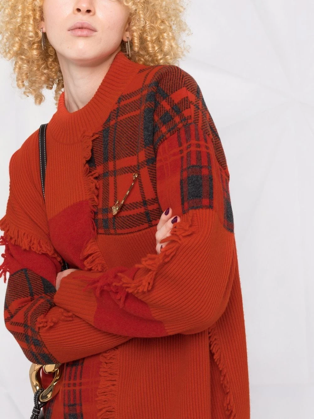 Détails d’empiècements, carreaux Plaid, détail nervuré, col montant, manches longues. Couleur : orange.