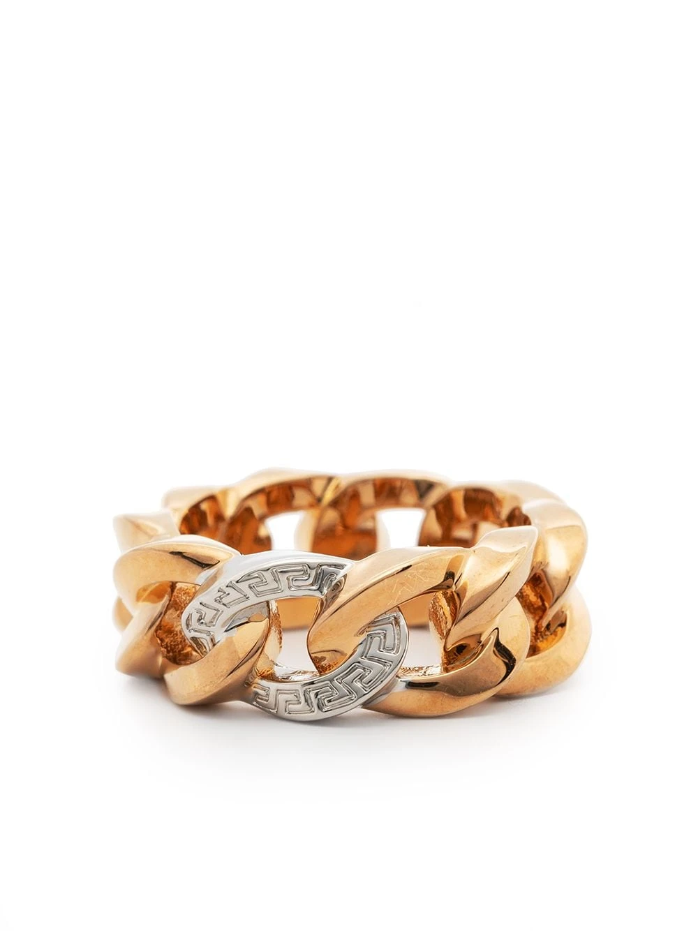 Finitions gravées, détail Greca signature, détails de chaînes, finitions en métal doré, ornements argentés.