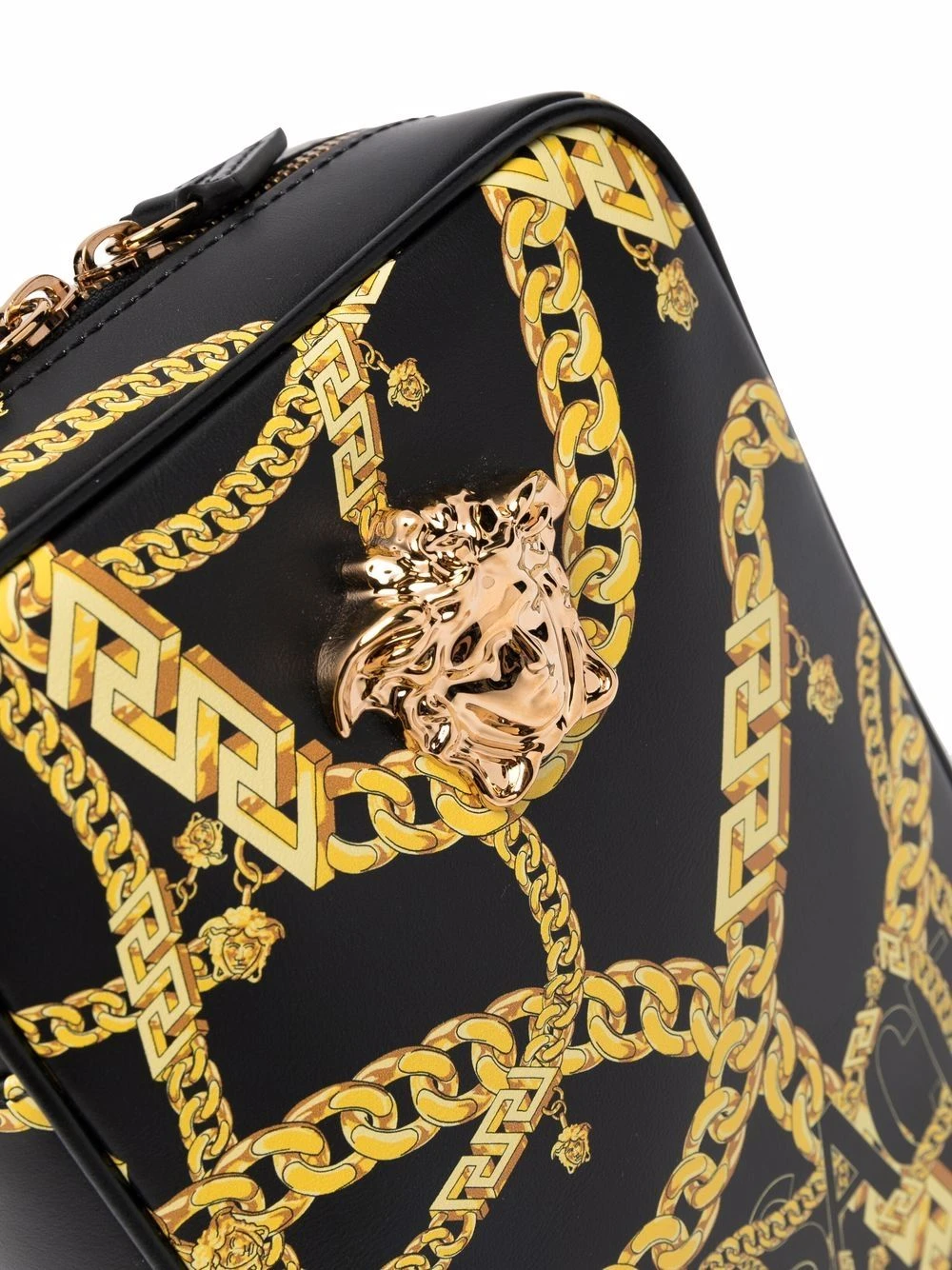 Logo imprimé sur le devant, imprimé chaîne, motif Medusa, fermeture zippée sur le dessus, bretelle portée épaule unique, compartiment principal.
