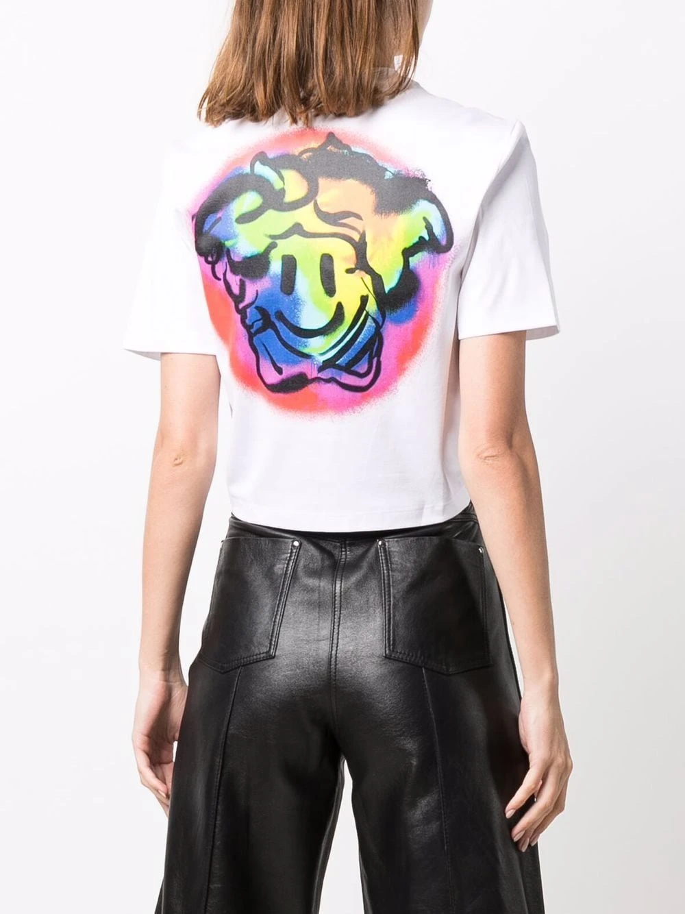 Tricot point jersey, détail d’épingle Medusa signature, logo imprimé à la poitrine, encolure ras du cou, manches courtes. Matière : coton.