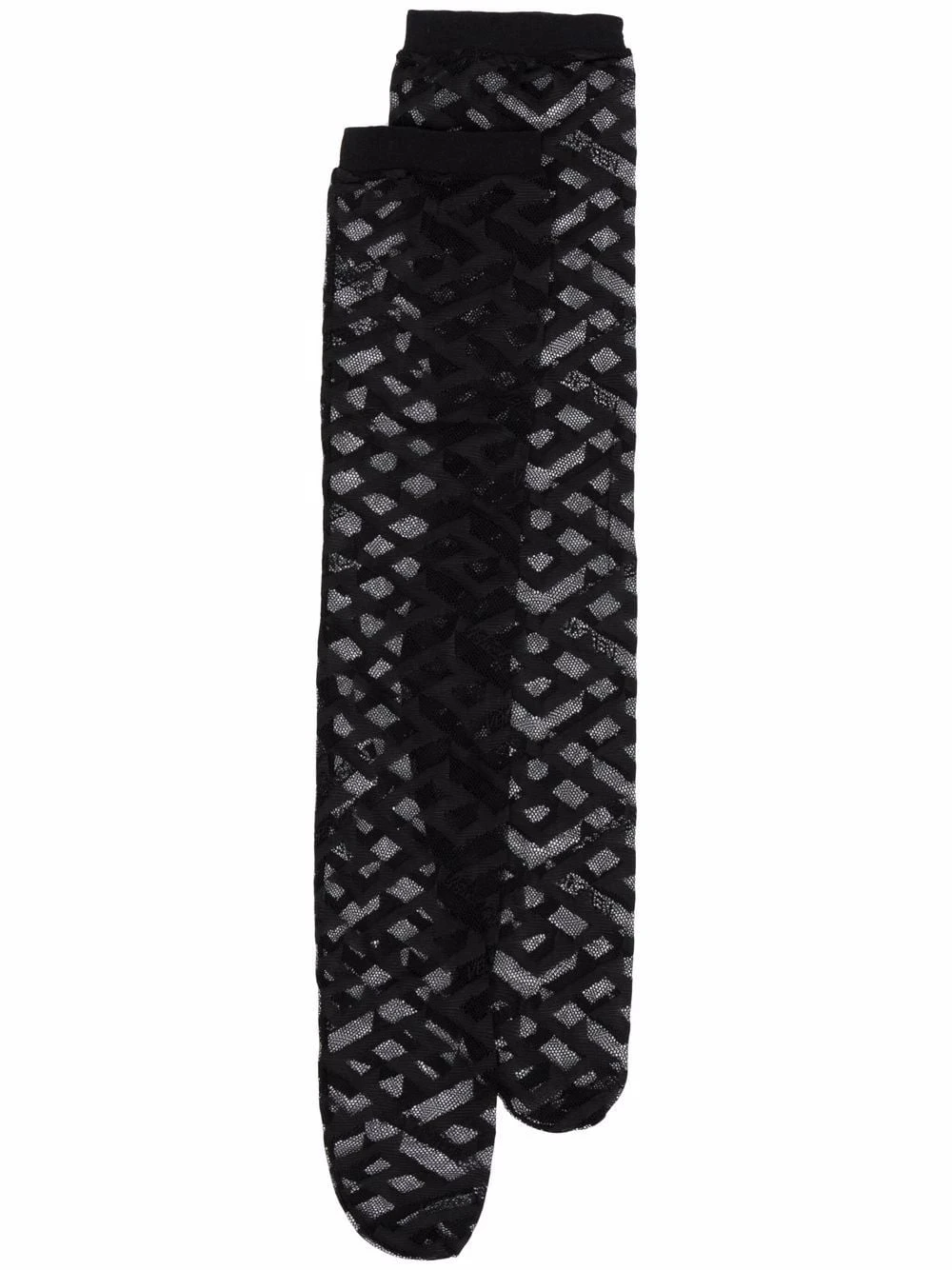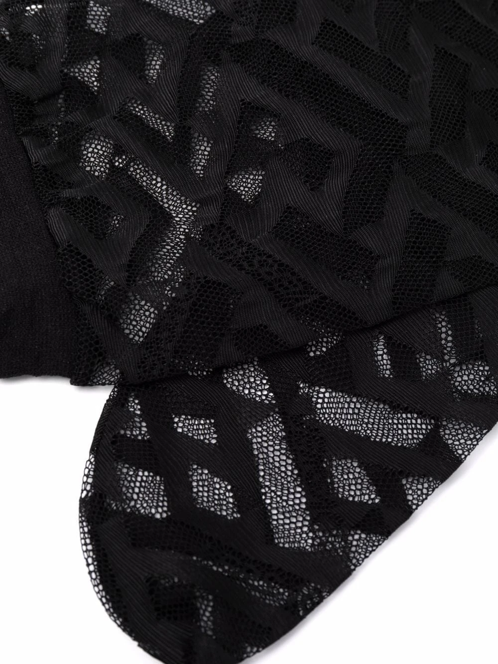 Noir, motif Greca signature imprimé, effet de transparence, construction stretch.