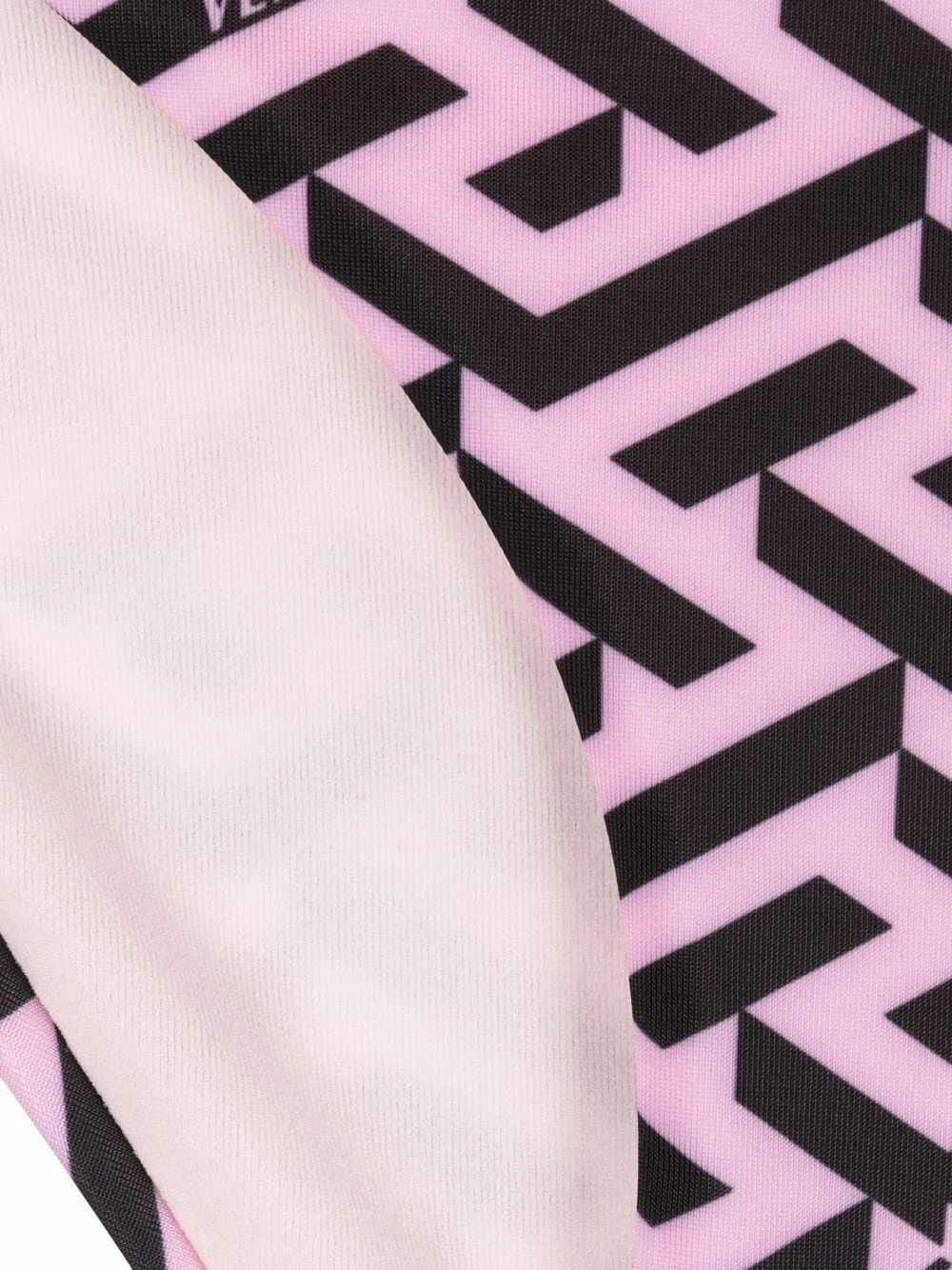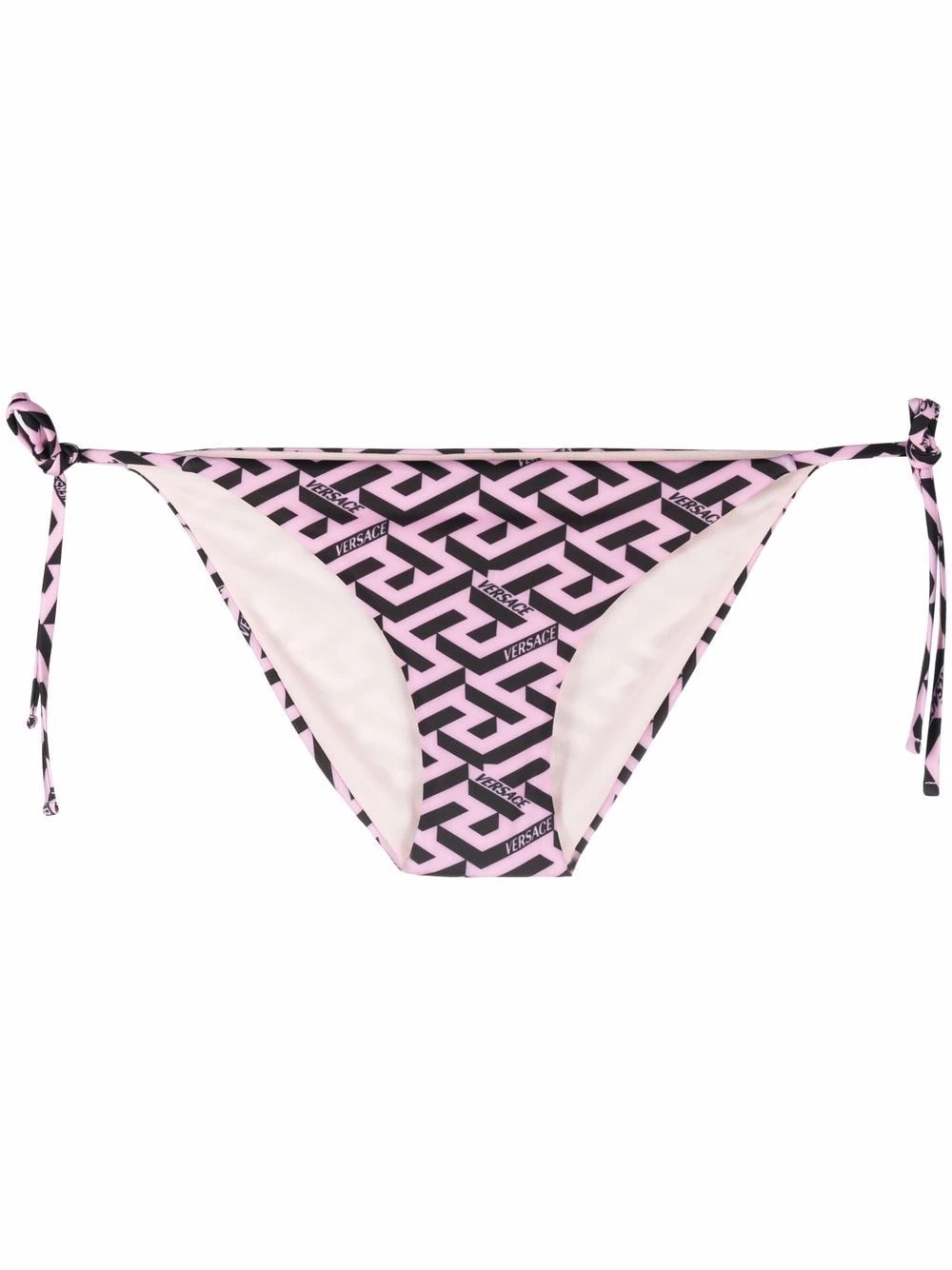 Motif Greca signature imprimé, construction stretch, modèle bicolore, fermeture à nouer sur les côtés. Veillez à essayer les maillot de bain par-dessus vos propres sous-vêtements.