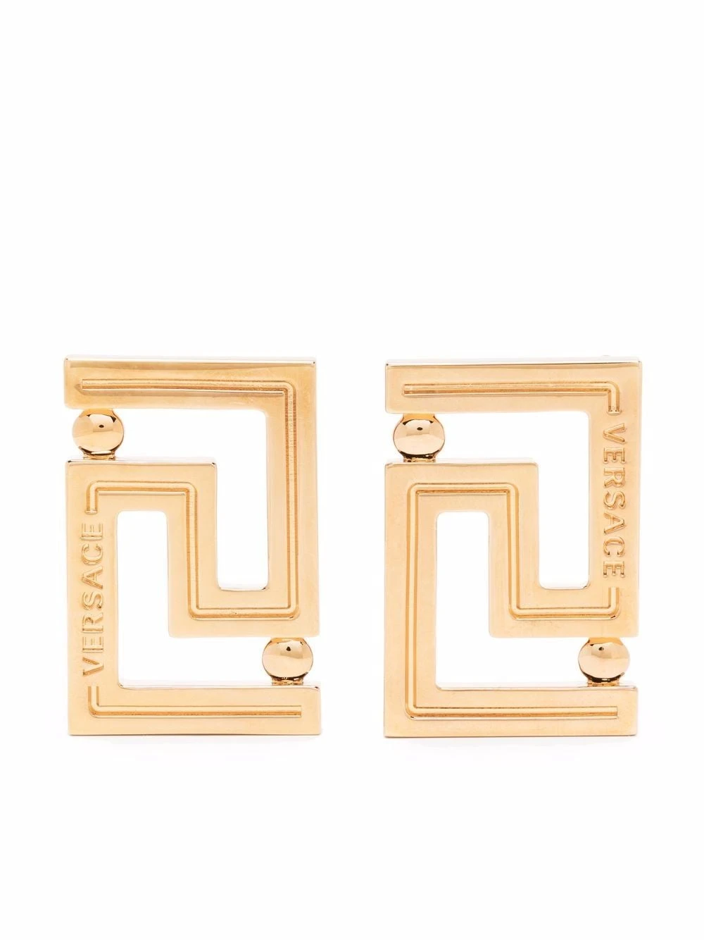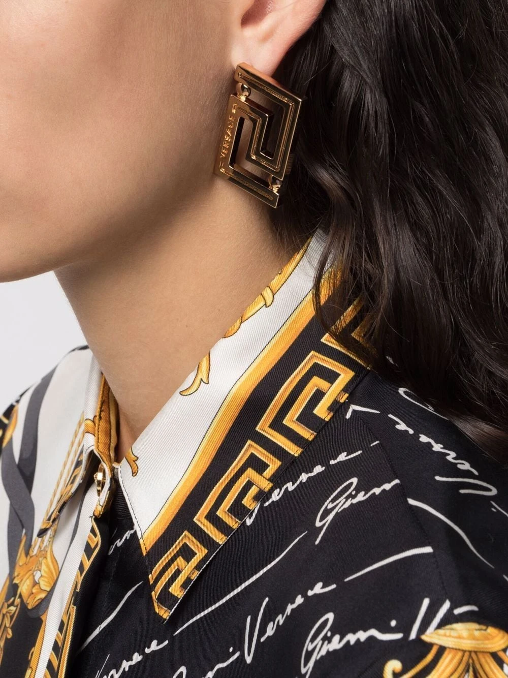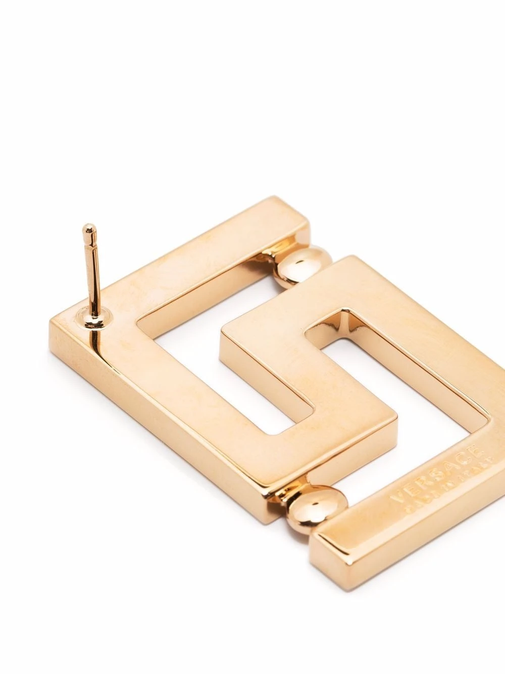 Détail Greca signature, logo lettre, fermoir papillon. Matière : métal. Les deux font la paire ! Ces boucles d’oreilles sont vendues par paire.