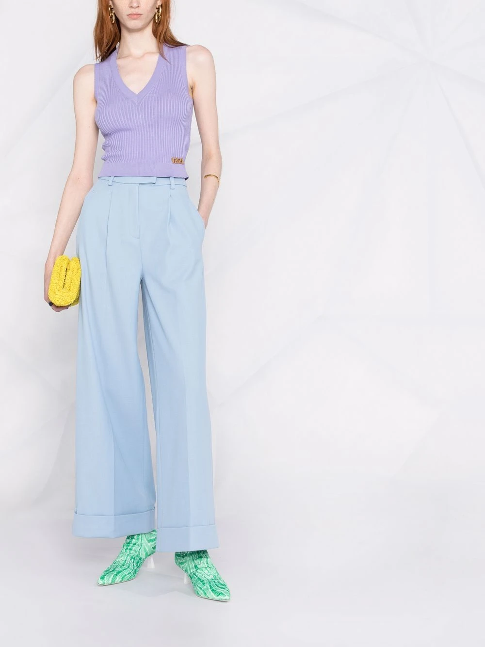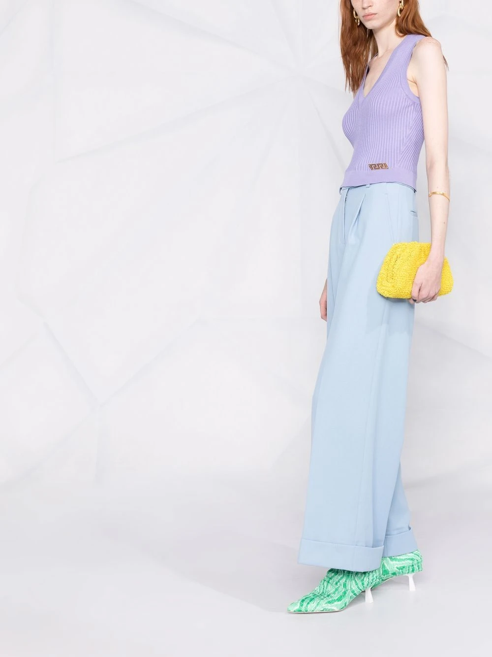 Imprimé La Greca signature, design en maille, col v, design sans manches, coupe courte, fines nervures.