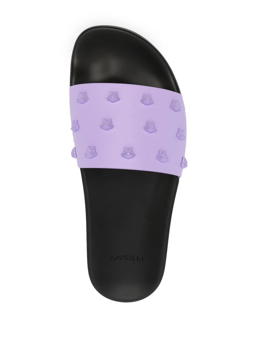 Détails de clous, semelle intérieure anatomique, bout ouvert. Couleur : Violet. MatiÚre : cuir.