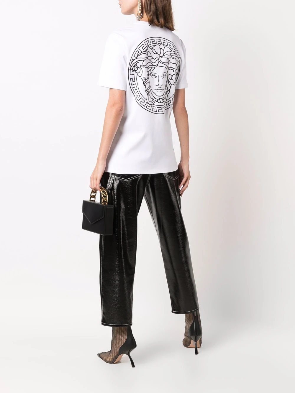 Motif Medusa, logo imprimé sur le devant, encolure ras du cou, manches courtes, ourlet droit. Couleur : blanc. Matière : coton.